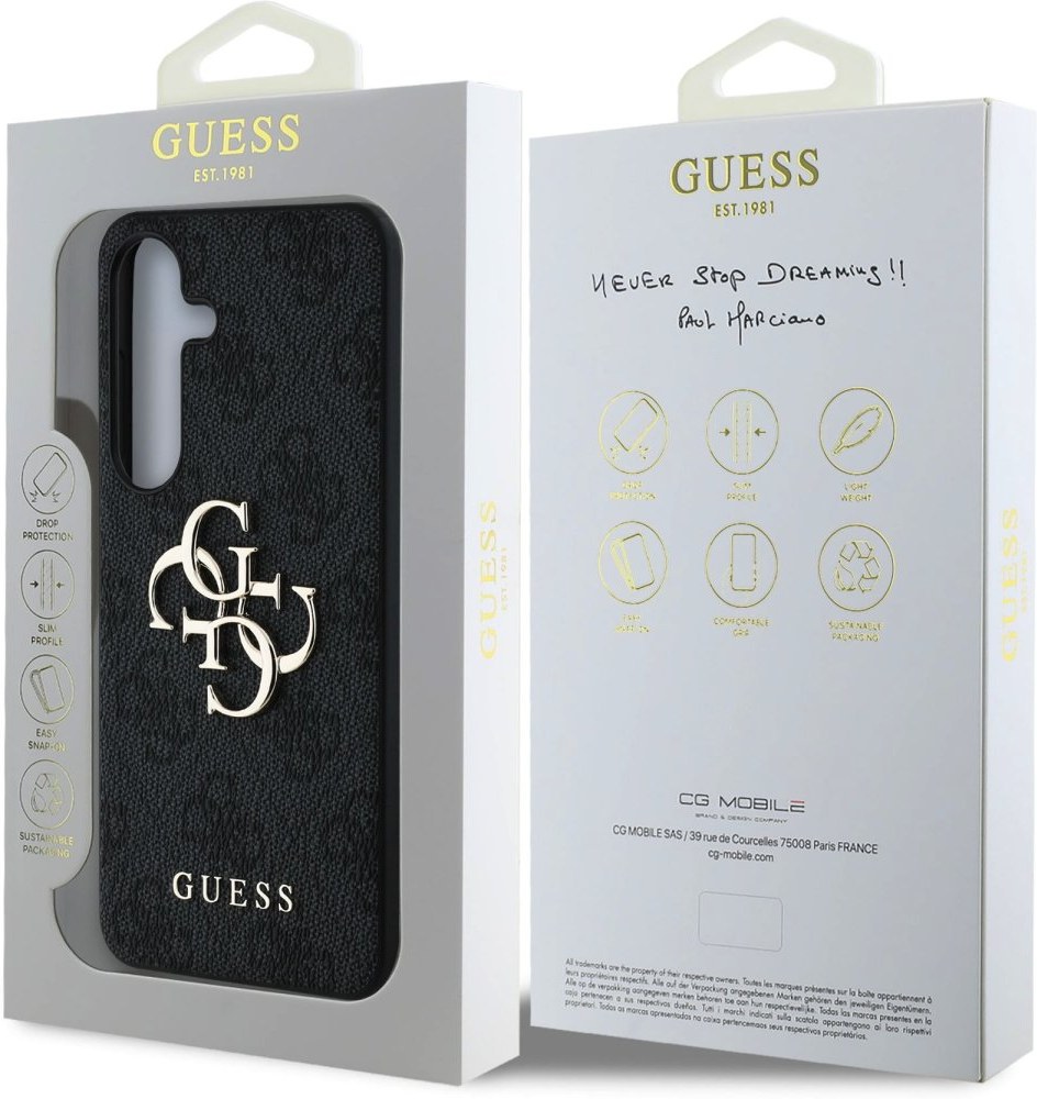 Prémiový zadný kryt Guess PU 4G Metal Logo sa vyznačuje elegantným, charakteristickým 4G vzorom, doplneným o logo GUESS. Kryt je vyrobený z ľahkého a odolného polyuretánu (PU) s povrchovou úpravou z PU kože a ponúka tak nielen skvelú ochranu telefónu, ale aj pohodlie pri používaní. Táto povrchová úprava zaisťuje pevný úchop, čo minimalizuje riziko, že telefón vykĺzne z ruky. Vďaka presnému tvaru perfektne sedí na telefóne a umožňuje ľahký prístup ku všetkým tlačidlám a konektorom. Tento prvotriedny kryt doplnený výrazným 4G logom a je skvelou ponukou pre ľudí, ktorí si v móde cenia nielen exkluzívneho vzhľadu, ale aj vysokej kvality a funkčnosti. Je to nevyhnutný doplnok pre každého, kto hľadá kombináciu elegancie a prestíže.Vlastnosti