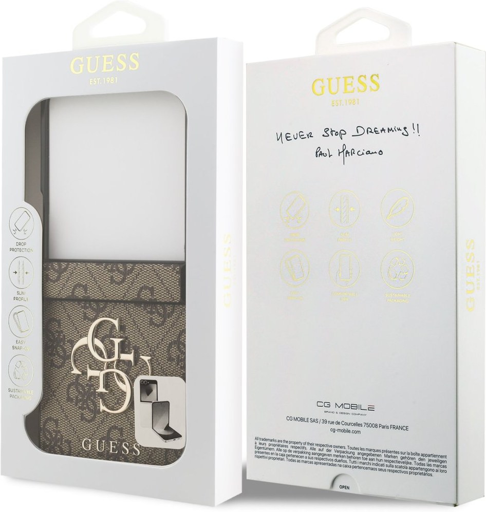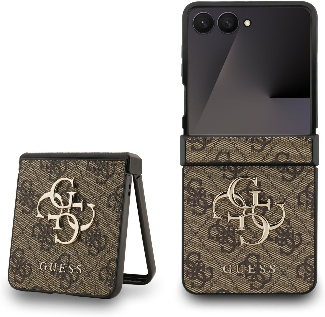 Guess PU 4G Metal Logo kryt pre Samsung Galaxy Z Flip 7, hnedý