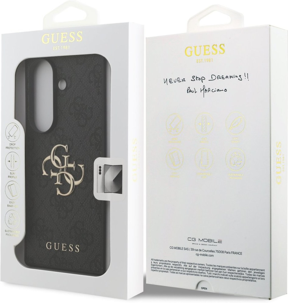 Prémiový zadný kryt Guess PU 4G Metal Logo sa vyznačuje elegantným, charakteristickým 4G vzorom, doplneným o logo GUESS. Kryt je vyrobený z ľahkého a odolného polyuretánu (PU) s povrchovou úpravou z PU kože a ponúka tak nielen skvelú ochranu telefónu, ale aj pohodlie pri používaní. Táto povrchová úprava zaisťuje pevný úchop, čo minimalizuje riziko, že telefón vykĺzne z ruky. Vďaka presnému tvaru perfektne sedí na telefóne a umožňuje ľahký prístup ku všetkým tlačidlám a konektorom. Tento prvotriedny kryt doplnený výrazným 4G logom a je skvelou ponukou pre ľudí, ktorí si v móde cenia nielen exkluzívneho vzhľadu, ale aj vysokej kvality a funkčnosti. Je to nevyhnutný doplnok pre každého, kto hľadá kombináciu elegancie a prestíže.Kľúčové vlastnosti