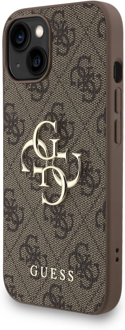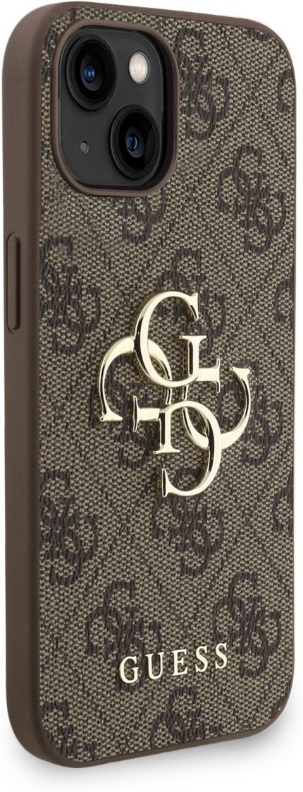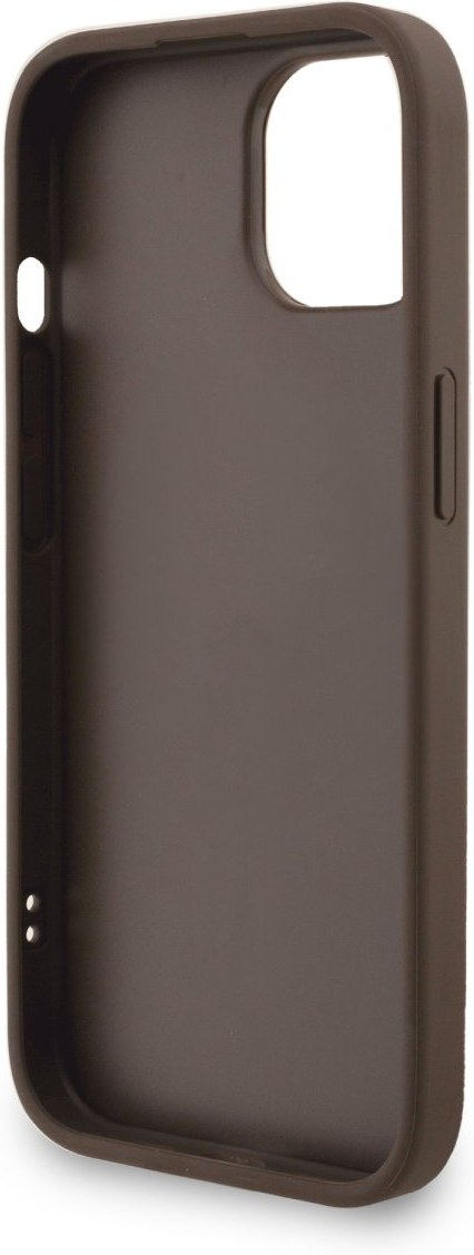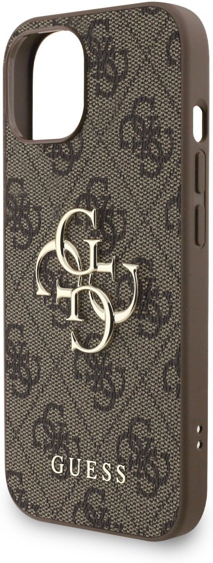 Guess PU 4G Metal Logo Strap kryt pre iPhone 15, hnedý