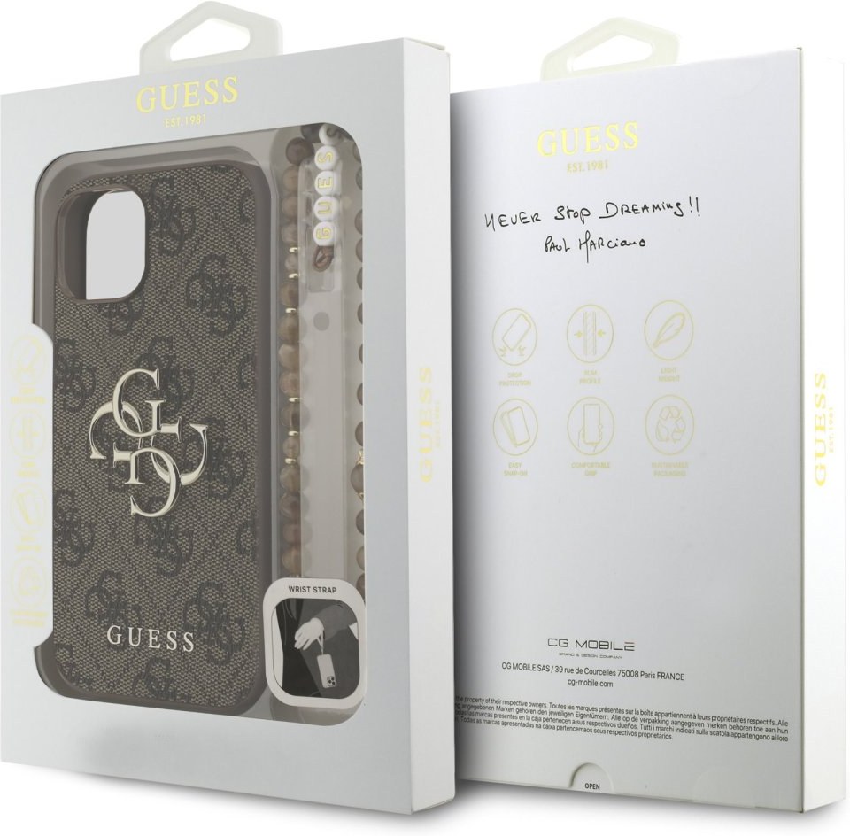 Prémiový zadný kryt Guess PU 4G Metal Logo Strap sa vyznačuje elegantným, charakteristickým 4G vzorom, doplneným o logo GUESS. Kryt je vyrobený z ľahkého a odolného polyuretánu (PU) s povrchovou úpravou z PU kože a ponúka tak nielen skvelú ochranu telefónu, ale aj pohodlie pri používaní. Táto povrchová úprava zaisťuje pevný úchop, čo minimalizuje riziko, že telefón vykĺzne z ruky. Vďaka presnému tvaru perfektne sedí na telefóne a umožňuje ľahký prístup ku všetkým tlačidlám a konektorom. Tento prvotriedny kryt doplnený výrazným 4G logom a je skvelou ponukou pre ľudí, ktorí si v móde cenia nielen exkluzívneho vzhľadu, ale aj vysokej kvality a funkčnosti. Kryt je doplnený elegantným koralovým pútkom, ktorý môžete nasadiť na zápästie, aby vám telefón nevykĺzol z ruky. To vám zaručí bezpečné manipulovanie s vaším zariadením. Je to nevyhnutný doplnok pre každého, kto hľadá kombináciu elegancie a prestíže.Kľúčové vlastnosti
