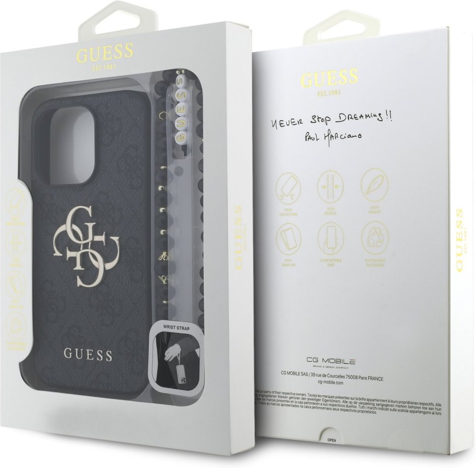 Prémiový zadný kryt Guess PU 4G Metal Logo Strap sa vyznačuje elegantným, charakteristickým 4G vzorom, doplneným o logo GUESS. Kryt je vyrobený z ľahkého a odolného polyuretánu (PU) s povrchovou úpravou z PU kože a ponúka tak nielen skvelú ochranu telefónu, ale aj pohodlie pri používaní. Táto povrchová úprava zaisťuje pevný úchop, čo minimalizuje riziko, že telefón vykĺzne z ruky. Vďaka presnému tvaru perfektne sedí na telefóne a umožňuje ľahký prístup ku všetkým tlačidlám a konektorom. Tento prvotriedny kryt doplnený výrazným 4G logom a je skvelou ponukou pre ľudí, ktorí si v móde cenia nielen exkluzívneho vzhľadu, ale aj vysokej kvality a funkčnosti. Kryt je doplnený elegantným koralovým pútkom, ktorý môžete nasadiť na zápästie, aby vám telefón nevykĺzol z ruky. To vám zaručí bezpečné manipulovanie s vaším zariadením. Je to nevyhnutný doplnok pre každého, kto hľadá kombináciu elegancie a prestíže.Vlastnosti
