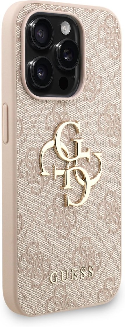 Guess PU 4G Metal Logo Strap kryt pre iPhone 15 Pro Max, ružový