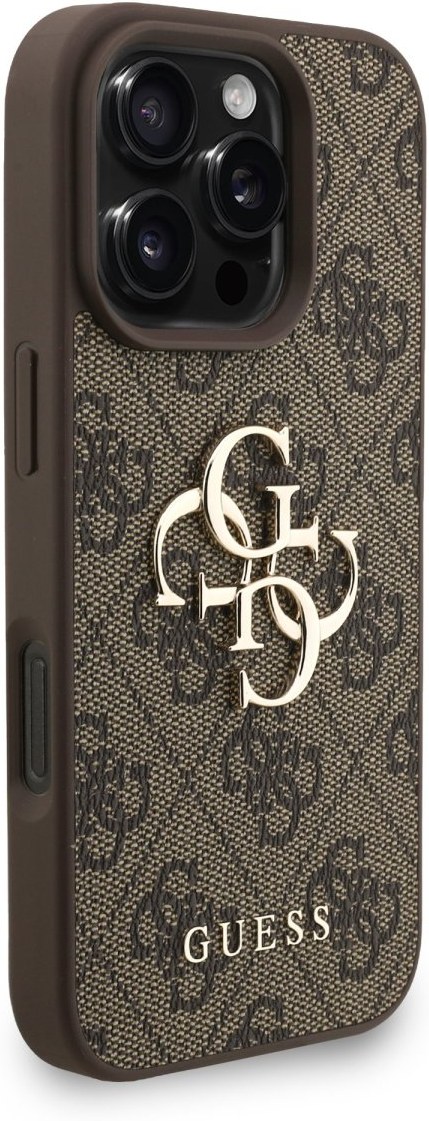 Guess PU 4G Metal Logo Strap kryt pre iPhone 16 Pro, hnedý