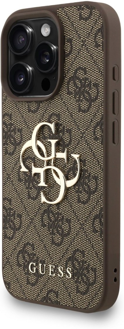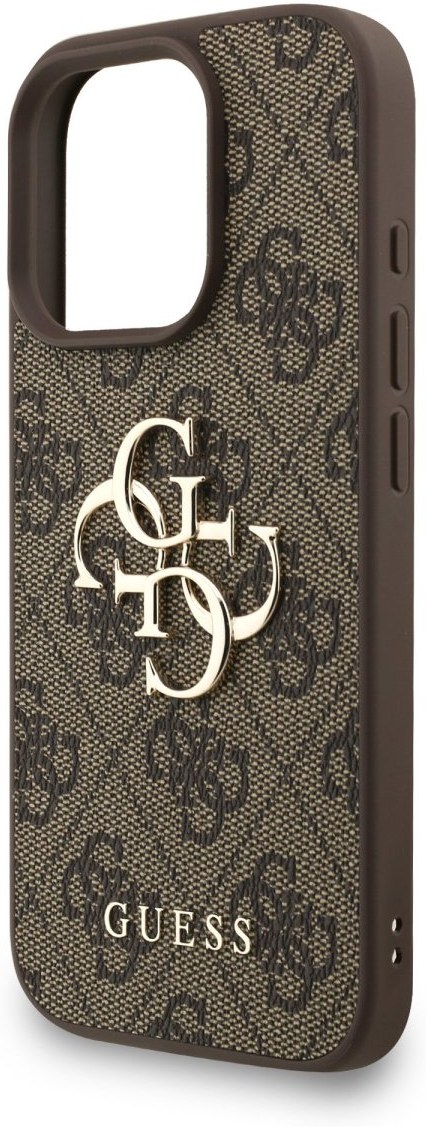 Guess PU 4G Metal Logo Strap kryt pre iPhone 16 Pro Max, hnedý