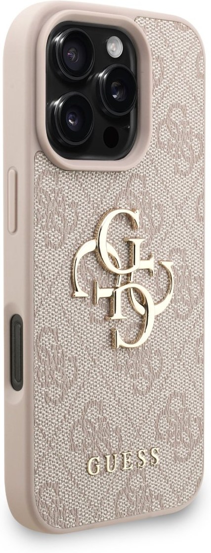 Guess PU 4G Metal Logo Strap kryt pre iPhone 16 Pro, ružový