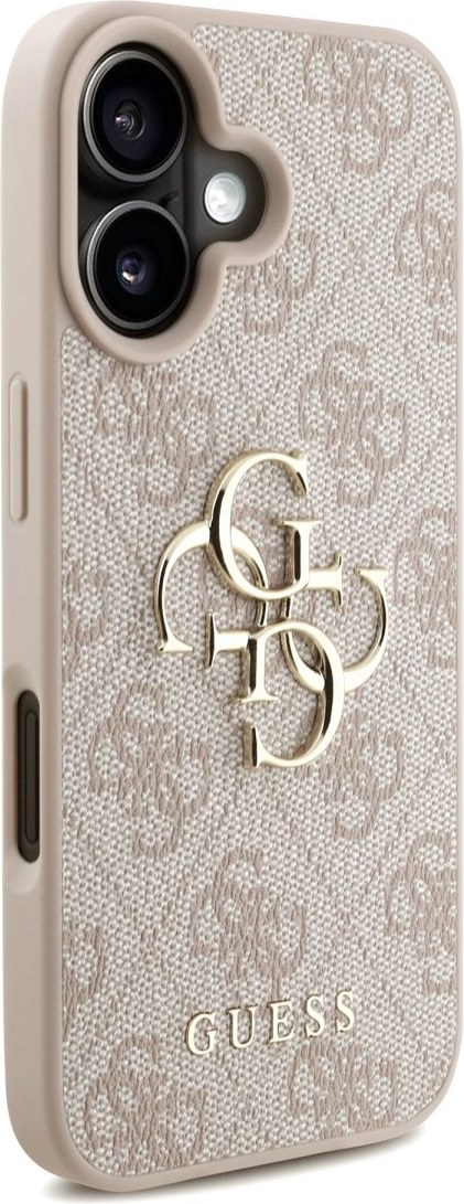 Guess PU 4G Metal Logo Strap kryt pre iPhone 16, ružový