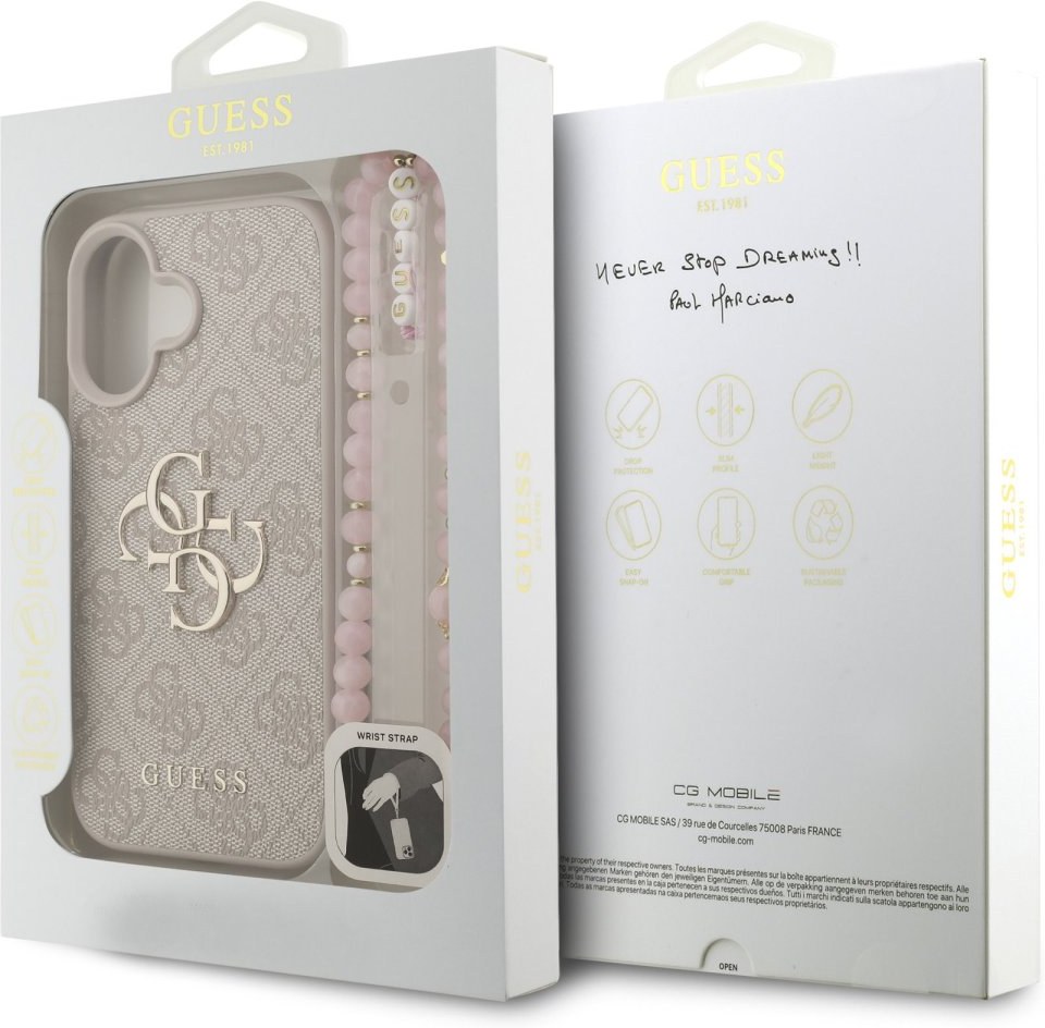 Prémiový zadný kryt Guess PU 4G Metal Logo Strap sa vyznačuje elegantným, charakteristickým 4G vzorom, doplneným o logo GUESS. Kryt je vyrobený z ľahkého a odolného polyuretánu (PU) s povrchovou úpravou z PU kože a ponúka tak nielen skvelú ochranu telefónu, ale aj pohodlie pri používaní. Táto povrchová úprava zaisťuje pevný úchop, čo minimalizuje riziko, že telefón vykĺzne z ruky. Vďaka presnému tvaru perfektne sedí na telefóne a umožňuje ľahký prístup ku všetkým tlačidlám a konektorom. Tento prvotriedny kryt doplnený výrazným 4G logom a je skvelou ponukou pre ľudí, ktorí si v móde cenia nielen exkluzívneho vzhľadu, ale aj vysokej kvality a funkčnosti. Kryt je doplnený elegantným koralovým pútkom, ktorý môžete nasadiť na zápästie, aby vám telefón nevykĺzol z ruky. To vám zaručí bezpečné manipulovanie s vaším zariadením. Je to nevyhnutný doplnok pre každého, kto hľadá kombináciu elegancie a prestíže.Technické parametre