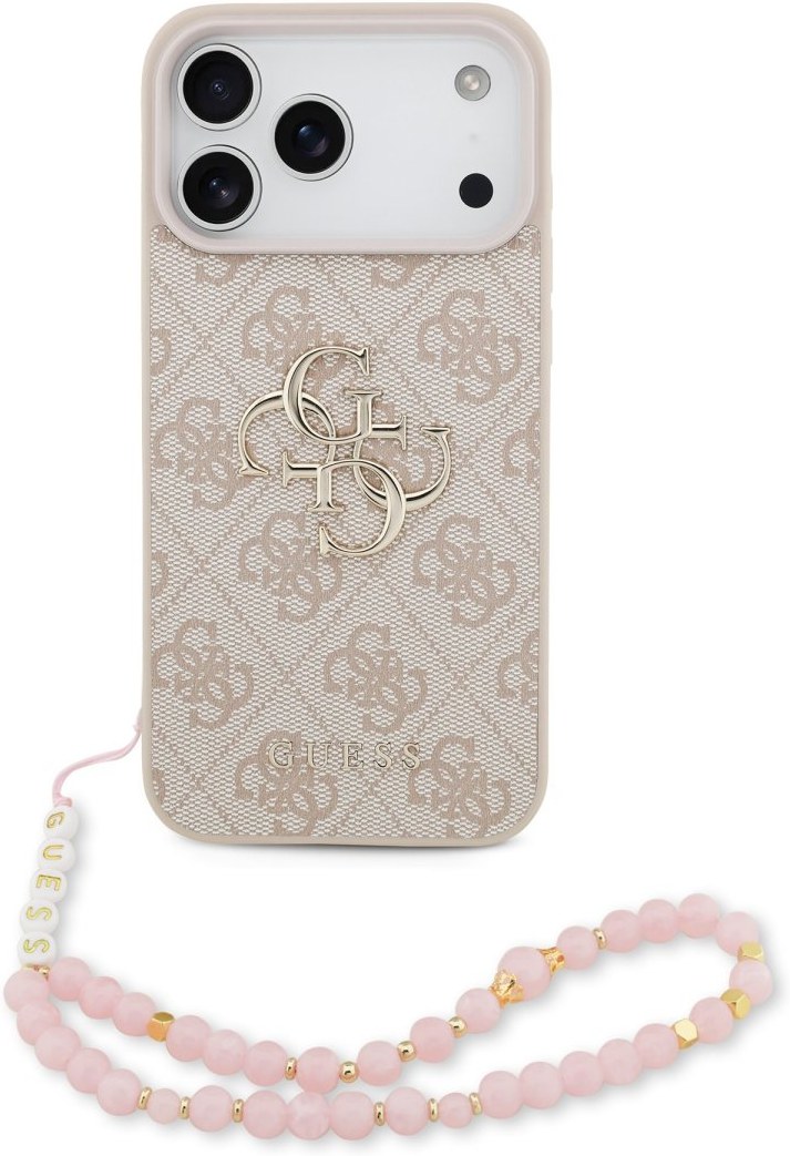Guess PU 4G Metal Logo Strap kryt pre iPhone 17 Pro Max, ružový