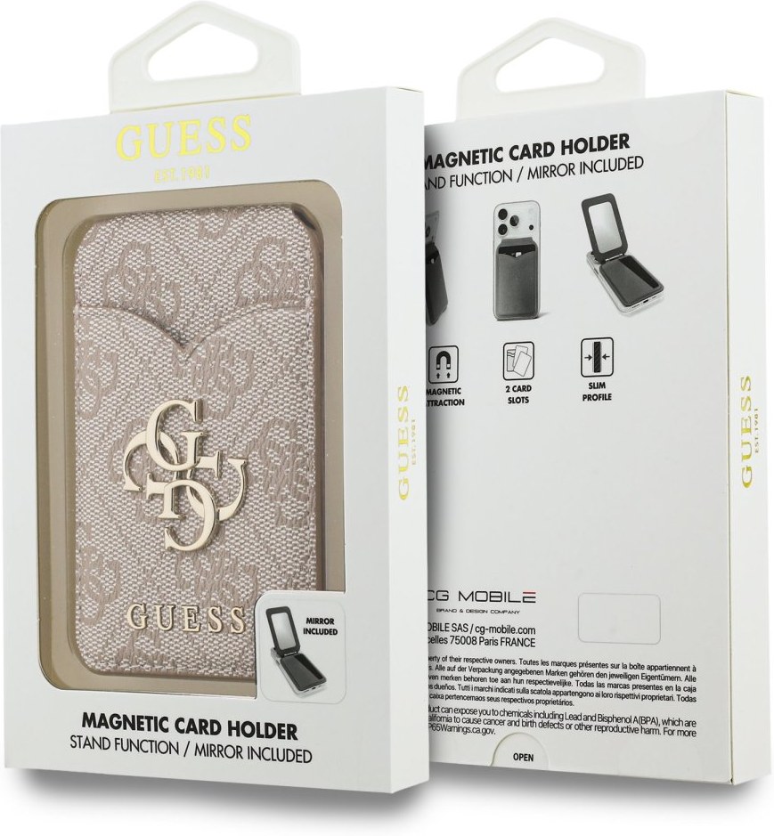 Guess PU 4G Mirror MagSafe Cardslot peňaženka so stojanom, ružová