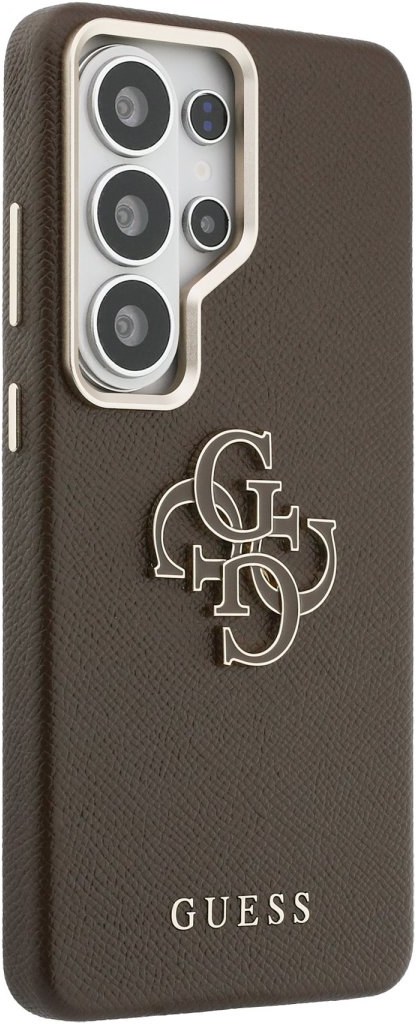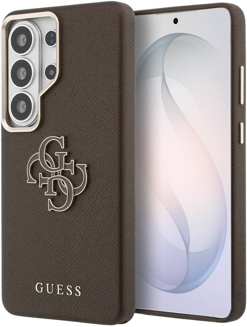 Guess PU 4G Resin Metal Logo kryt pre Samsung Galaxy S26 Ultra, hnedý