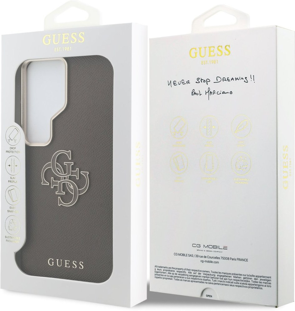 Prémiový zadný kryt Guess PU 4G Resin Metal Logo sa vyznačuje elegantným, charakteristickým 4G vzorom, doplneným o logo GUESS. Kryt je vyrobený z ľahkého a odolného polyuretánu (PU) s povrchovou úpravou z PU kože a ponúka tak nielen skvelú ochranu telefónu, ale aj pohodlie pri používaní. Táto povrchová úprava zaisťuje pevný úchop, čo minimalizuje riziko, že telefón vykĺzne z ruky. Vďaka presnému tvaru perfektne sedí na telefóne a umožňuje ľahký prístup ku všetkým tlačidlám a konektorom. Tento prvotriedny kryt doplnený výrazným Resin 4G logom a je skvelou ponukou pre ľudí, ktorí si v móde cenia nielen exkluzívneho vzhľadu, ale aj vysokej kvality a funkčnosti. Je to nevyhnutný doplnok pre každého, kto hľadá kombináciu elegancie a prestíže.Kľúčové vlastnosti