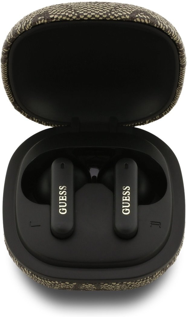 Guess PU 4G Script Logo ENC TWS, bezdrôtové slúchadlá, hnedé