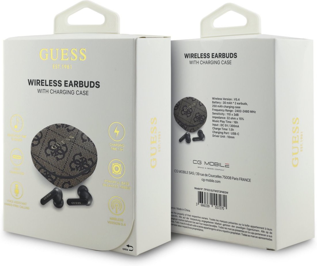 Bezdrôtové Slúchadlá Guess PU 4G Script Logo ENC TWS. Objavte svet neobmedzenej slobody a špičkového zvuku s bezdrôtovými slúchadlami Guess. Tieto moderné slúchadlá kombinujú štýlový dizajn s pokročilou technológiou, čo ich robí ideálnymi pre každodenné používanie, či už pri športe, cestovaní alebo práci. Bezdrôtové slúchadlá Guess sú perfektnou voľbou pre tých, ktorí hľadajú kombináciu štýlu, komfortu a vynikajúceho zvuku. Vyberte si slúchadlá Guess a užite si hudbu aj hovory bez kompromisov, kdekoľvek a kedykoľvek.Kľúčové vlastnosti