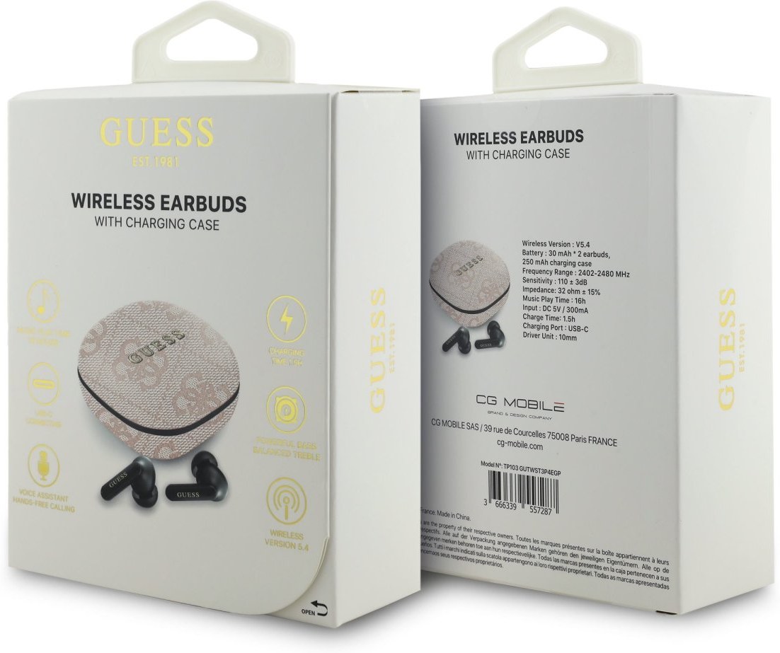 Bezdrôtové Slúchadlá Guess PU 4G Script Logo ENC TWS Objavte svet neobmedzenej slobody a špičkového zvuku s bezdrôtovými slúchadlami Guess. Tieto moderné slúchadlá kombinujú štýlový dizajn s pokročilou technológiou, čo ich robí ideálnymi pre každodenné používanie, či už pri športe, cestovaní alebo práci. Bezdrôtové slúchadlá Guess sú perfektnou voľbou pre tých, ktorí hľadajú kombináciu štýlu, komfortu a vynikajúceho zvuku. Vyberte si slúchadlá Guess a užite si hudbu aj hovory bez kompromisov, kdekoľvek a kedykoľvek.Kľúčové vlastnosti