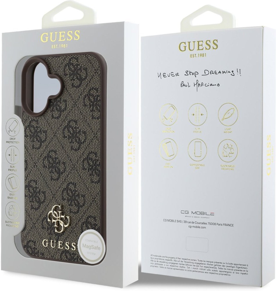 Prémiový zadný kryt Guess PU 4G Small Metal Logo Magafe sa vyznačuje elegantným, charakteristickým 4G logom GUESS.