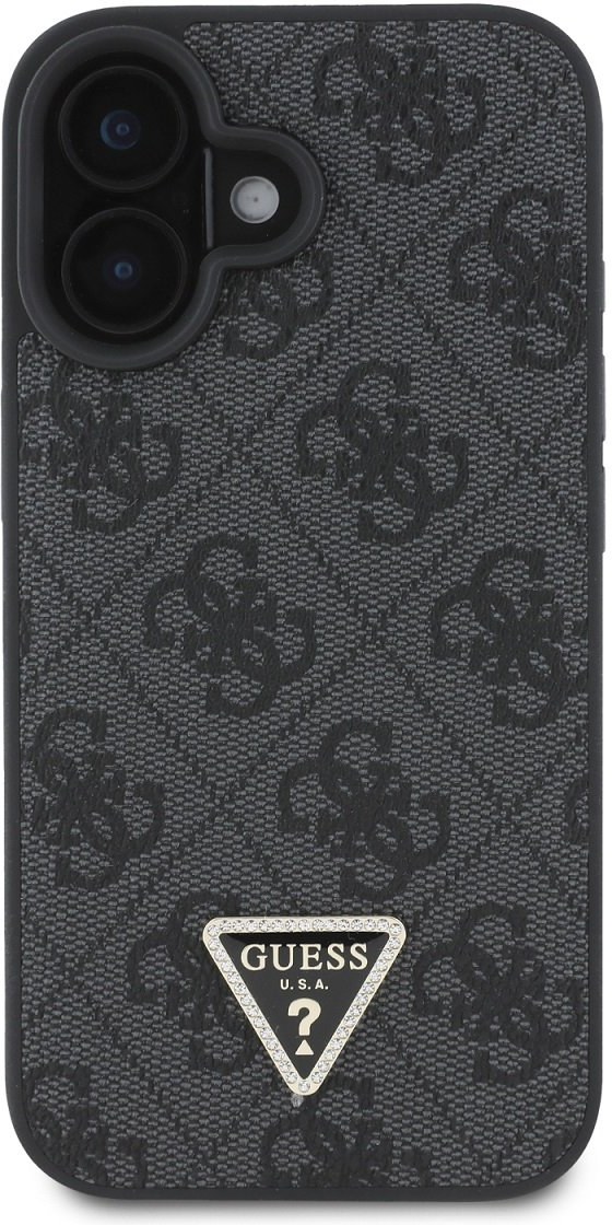 Guess PU 4G Strass Triangle Metal Logo kryt + Crossbody popruh pre iPhone 16, čierny