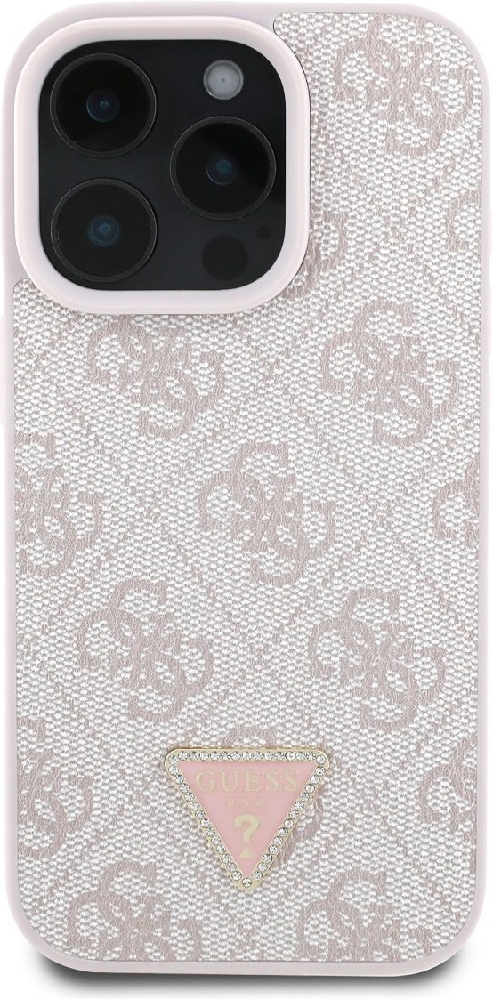 Guess PU 4G Strass Triangle Metal Logo kryt pre iPhone 16 Pro Max, ružový