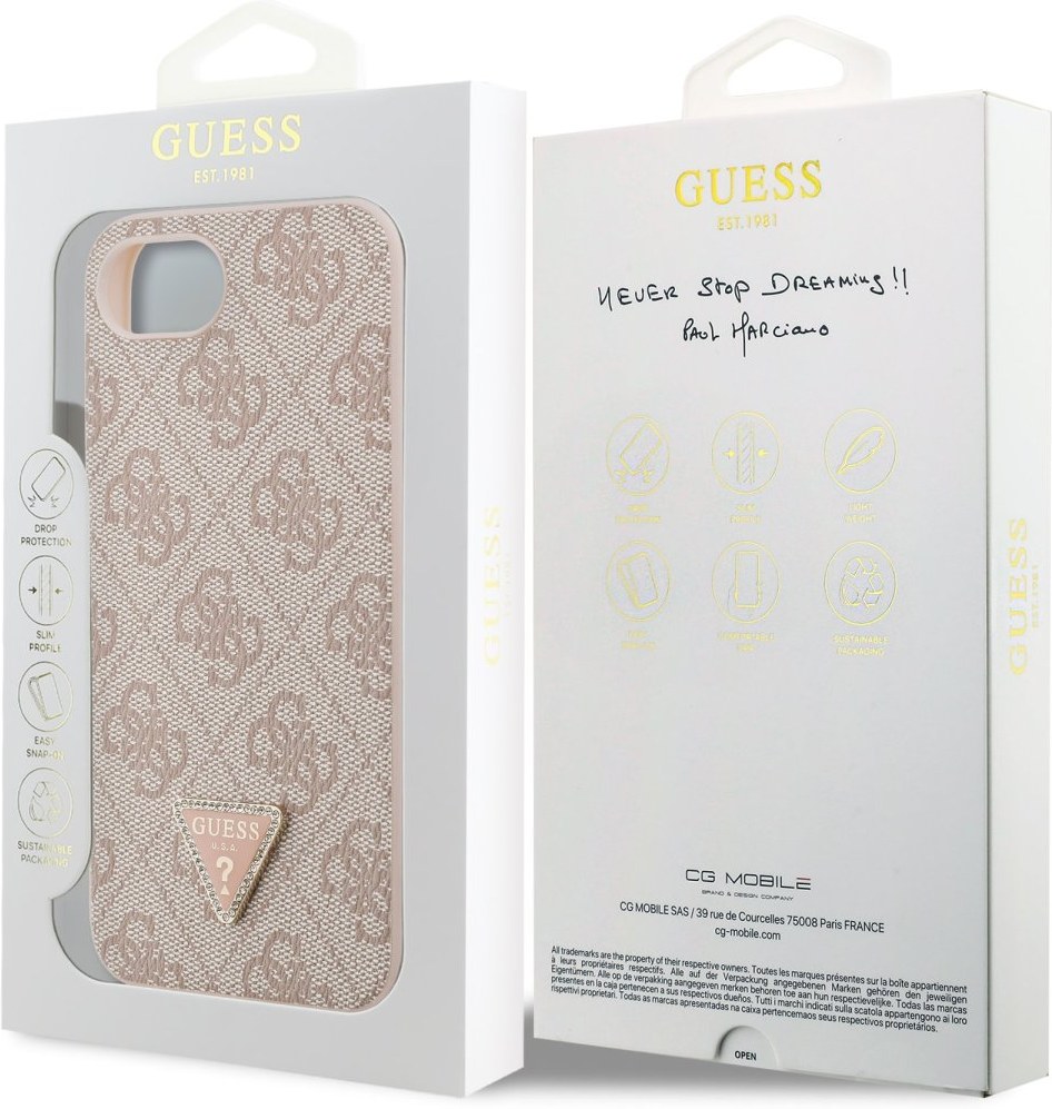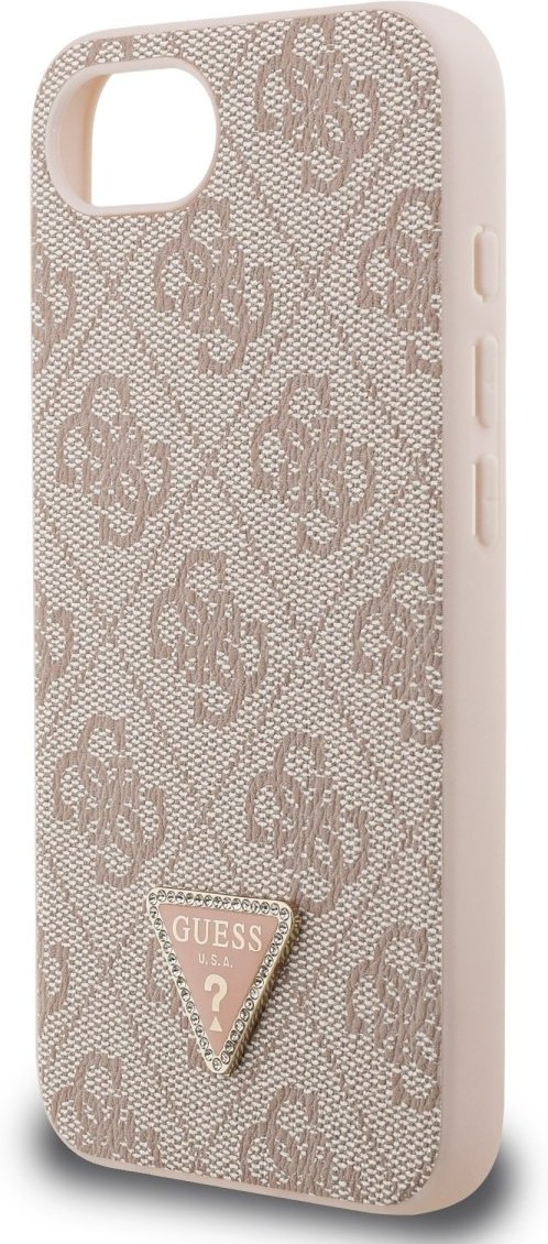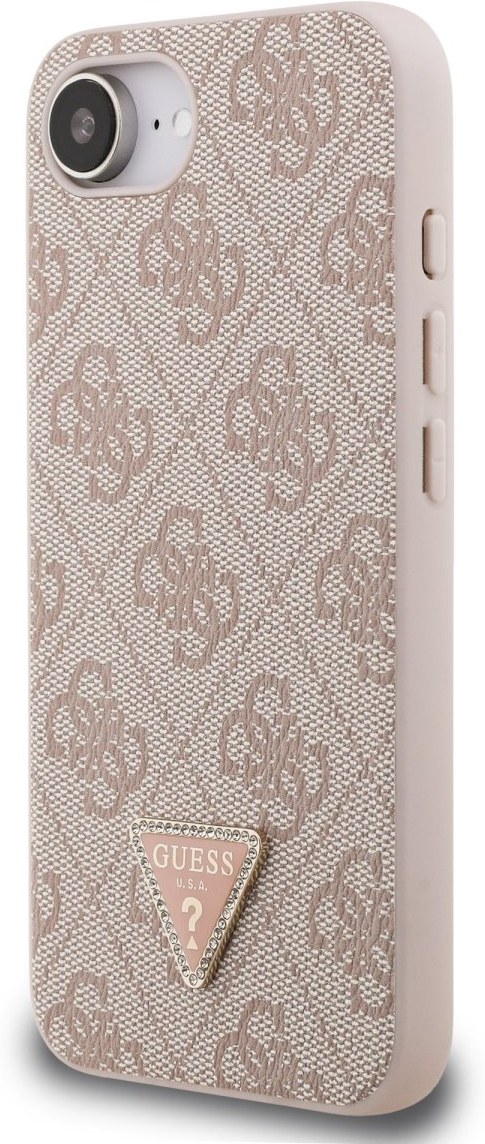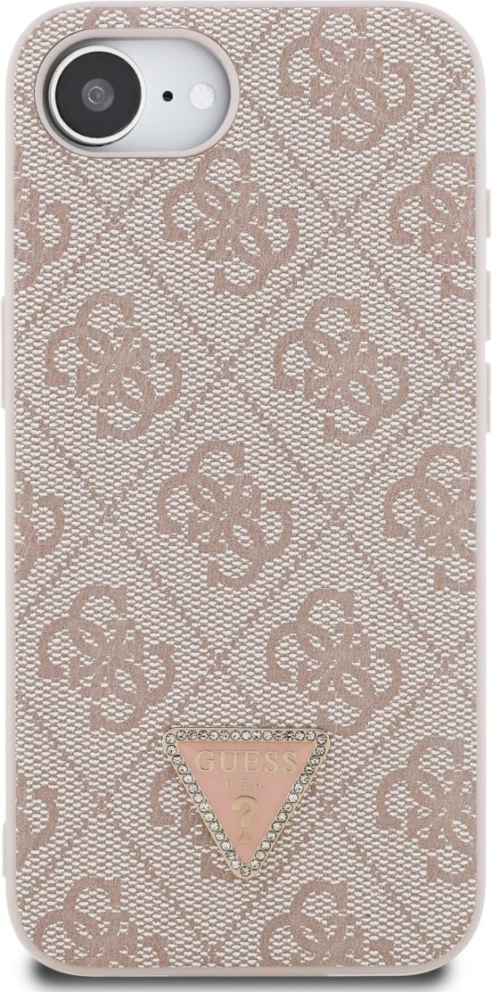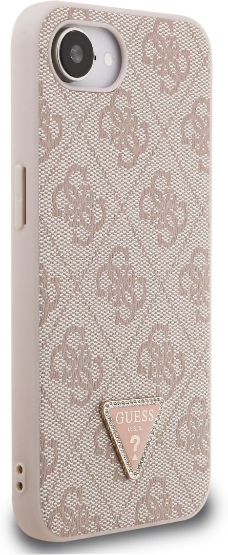 Guess PU 4G Strass Triangle Metal Logo kryt pre iPhone 16e, ružový
