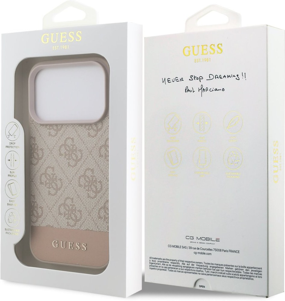 Guess PU 4G Stripe zadný kryt je dokonalý doplnok pre váš telefón aj váš outfit, ktorý kombinuje funkčnosť a štýl v jednom. Je vyrobený z kombinácie ľahkého a odolného PU materiálu na zadnej strane a PC/TPU materiálu na bokoch a ponúka tak skvelú ochranu telefónu aj pohodlia pri používaní. Povrchová úprava krytu zaisťuje, že sa skvele drží v ruke a nešmýka sa, čo minimalizuje riziko vykĺznutia telefónu. Vďaka presnému tvaru perfektne sedí na telefóne a umožňuje ľahký prístup ku všetkým tlačidlám a konektorom. Guess „4G“ elegantná potlač a kovové logo ponúka nielen decentný, ale aj luxusný vzhľad. Pokiaľ teda hľadáte kryt, ktorý kombinuje eleganciu a funkčnosť, je tento kúsok od Guess tou pravou voľbou pre vás.Kľúčové vlastnosti