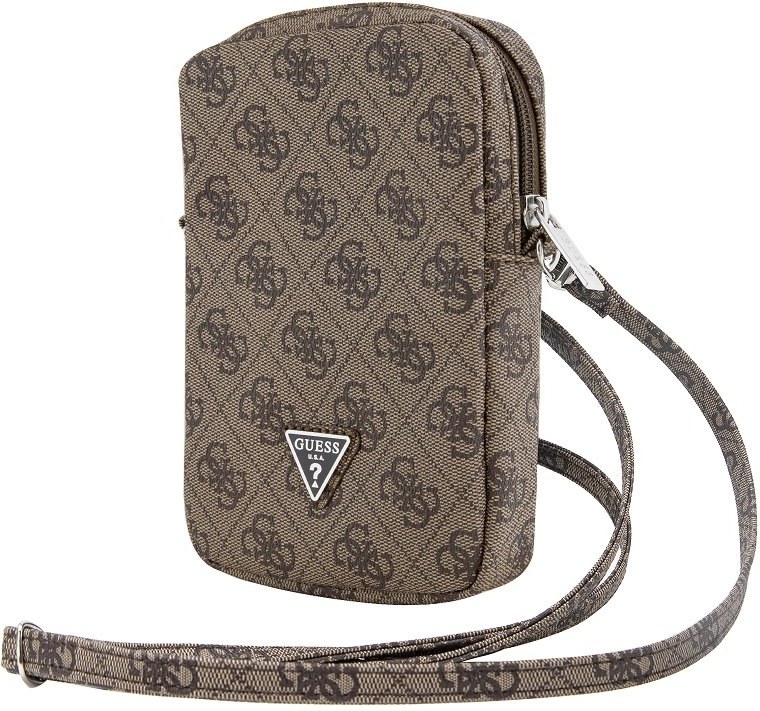 Guess PU 4G Triangle Logo taška na telefón so zipsom, hnedá