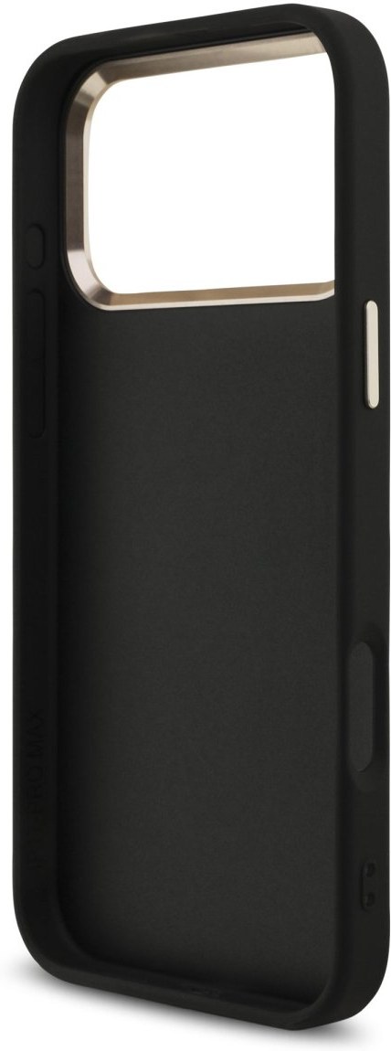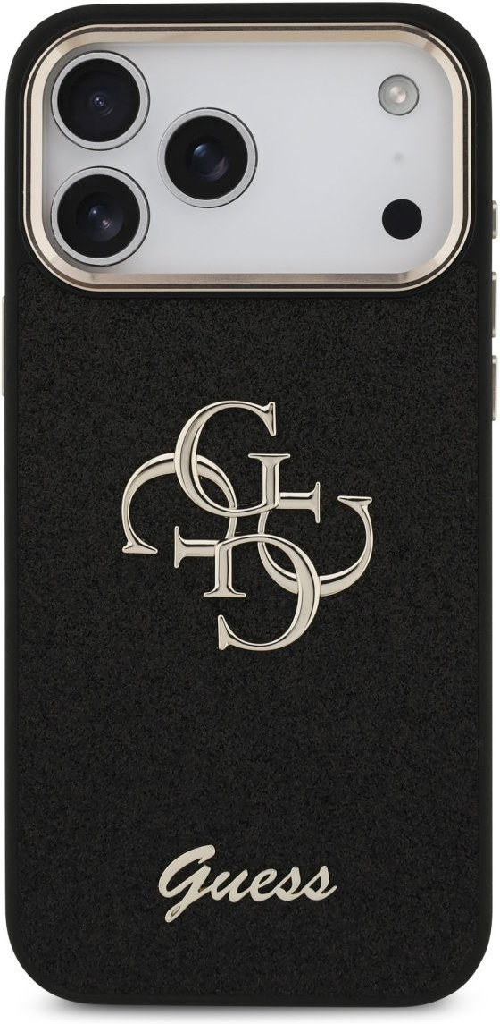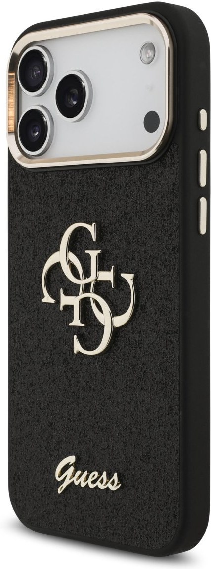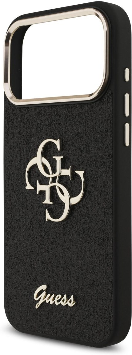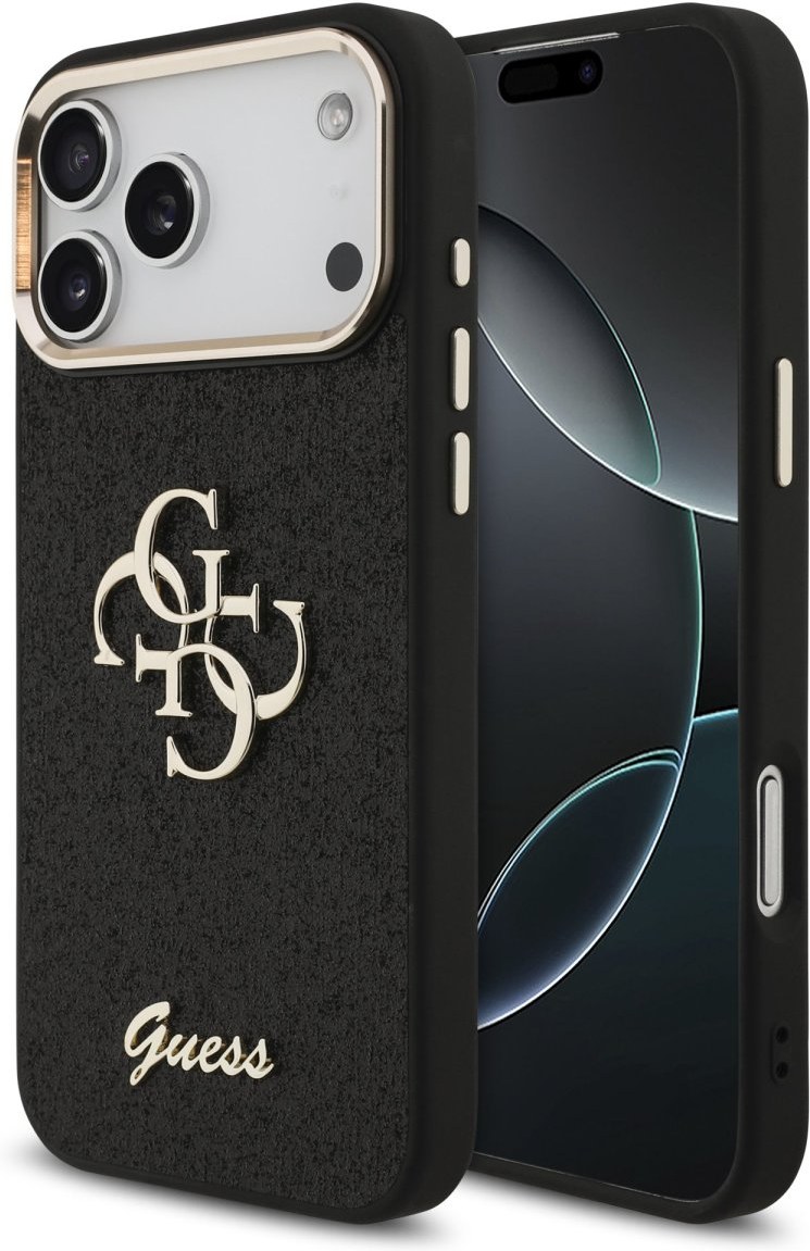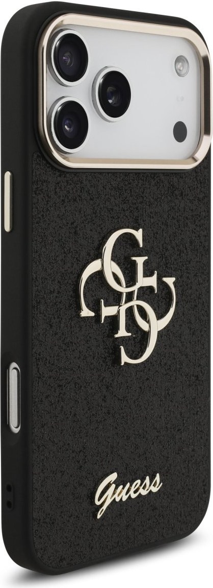 Guess PU Fixed Glitter 4G Metal Frame kryt pre iPhone 17 Pro Max, čierny