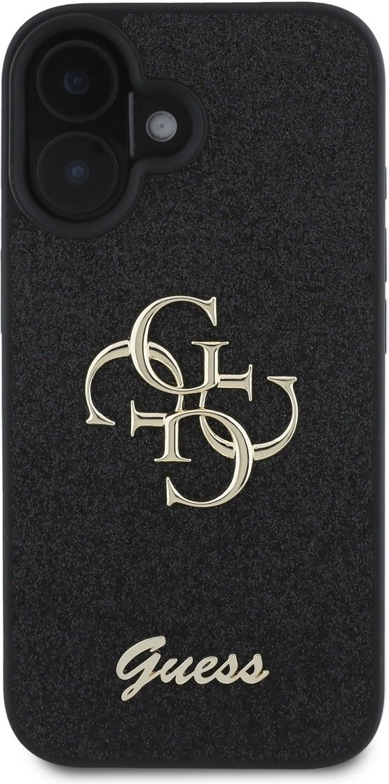 Guess PU Fixed Glitter 4G Metal Logo kryt pre iPhone 16, čierny