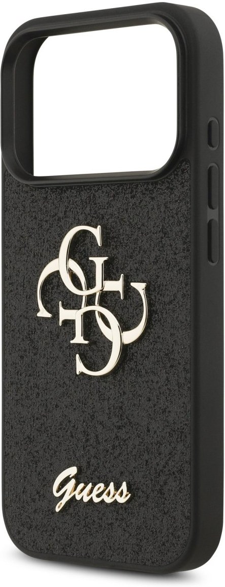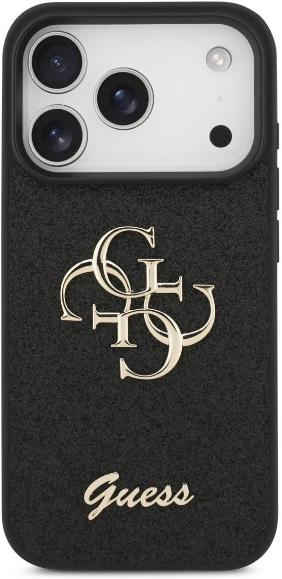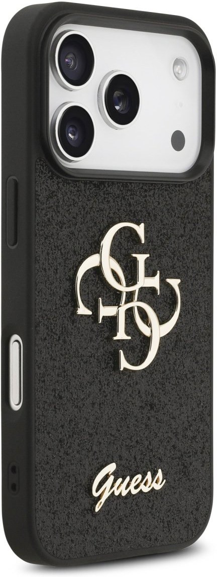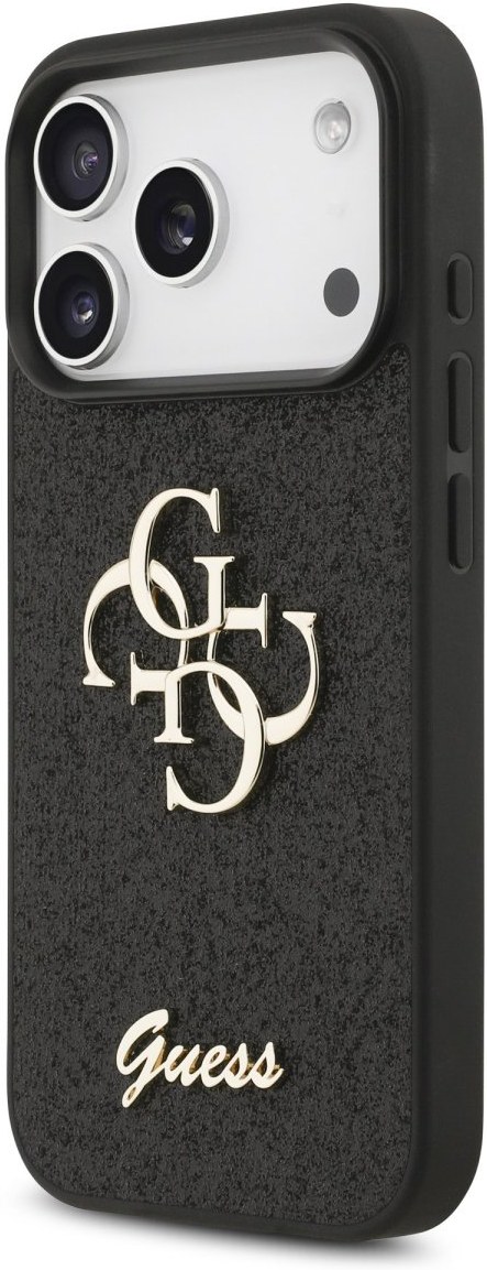 Guess PU Fixed Glitter 4G Metal Logo kryt pre iPhone 17 Pro, čierny