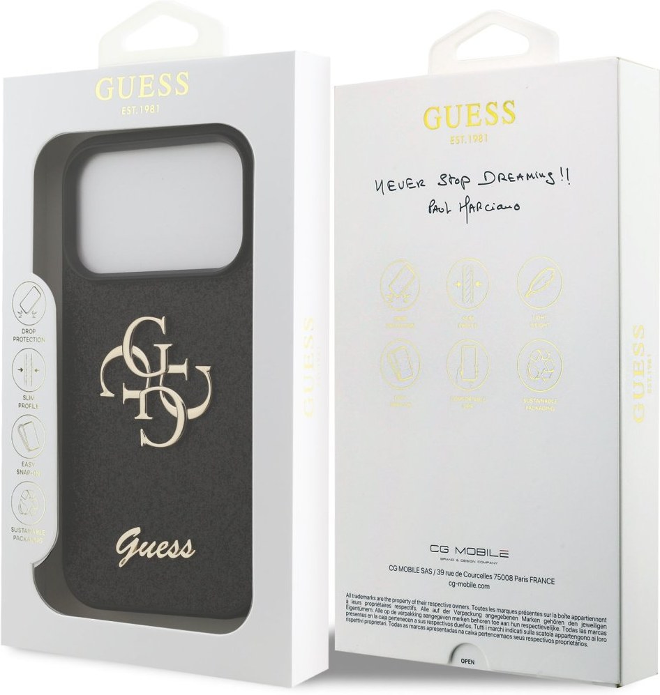 Guess PU Fixed Glitter 4G Metal Logo kryt pre iPhone 17 Pro