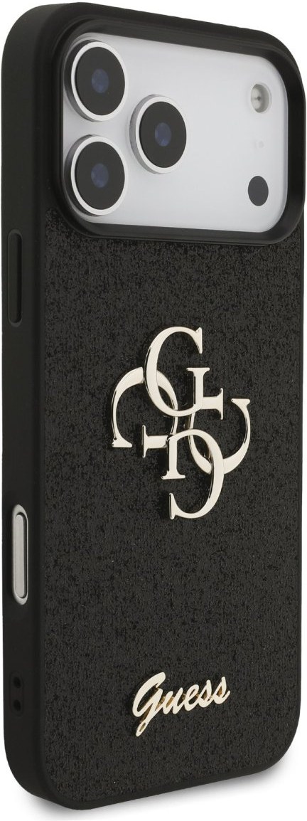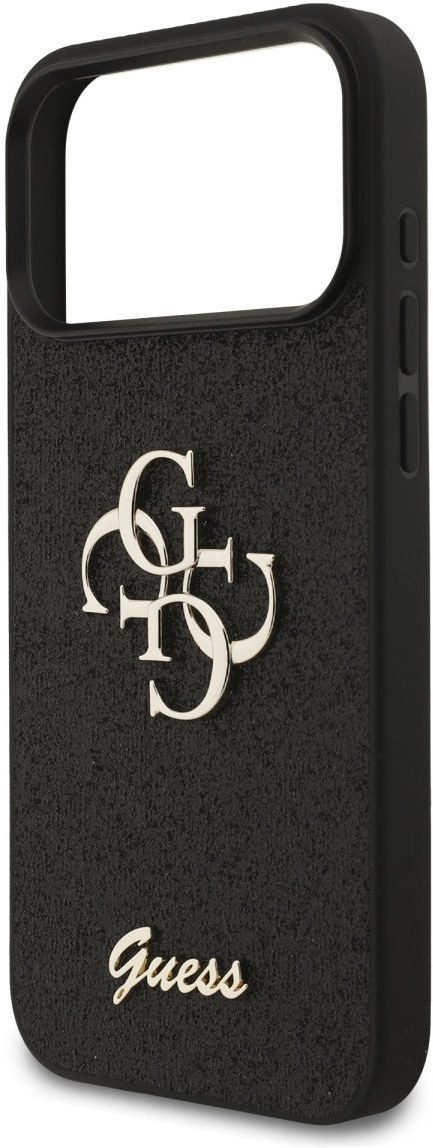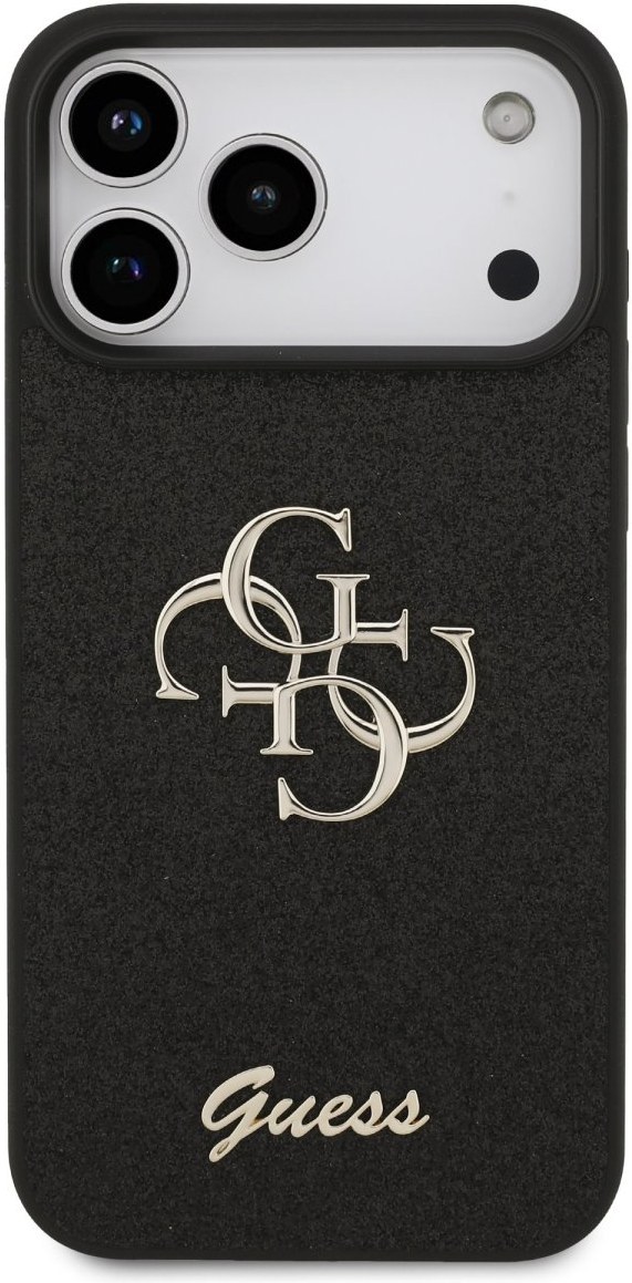 Guess PU Fixed Glitter 4G Metal Logo kryt pre iPhone 17 Pro Max, čierny