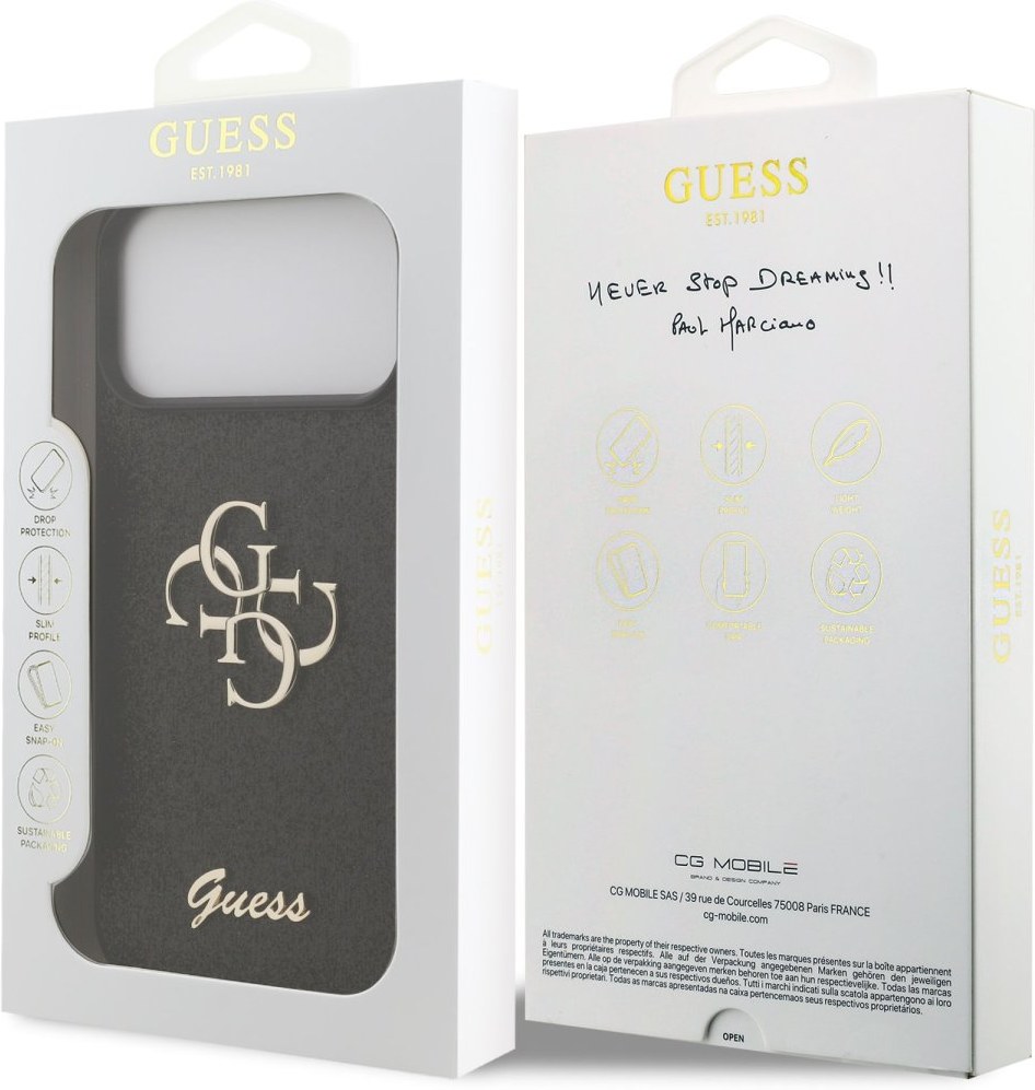 Guess PU Fixed Glitter 4G Metal Logo kryt pre iPhone 17 Pro Max