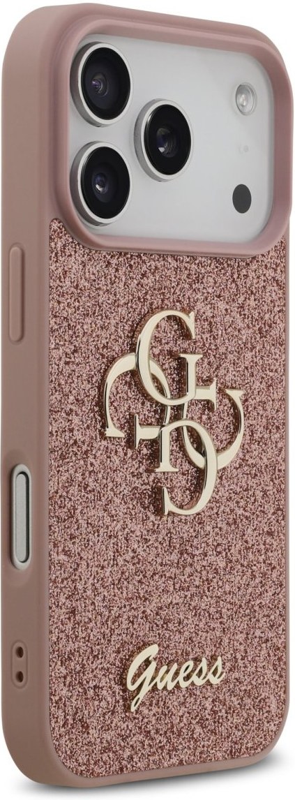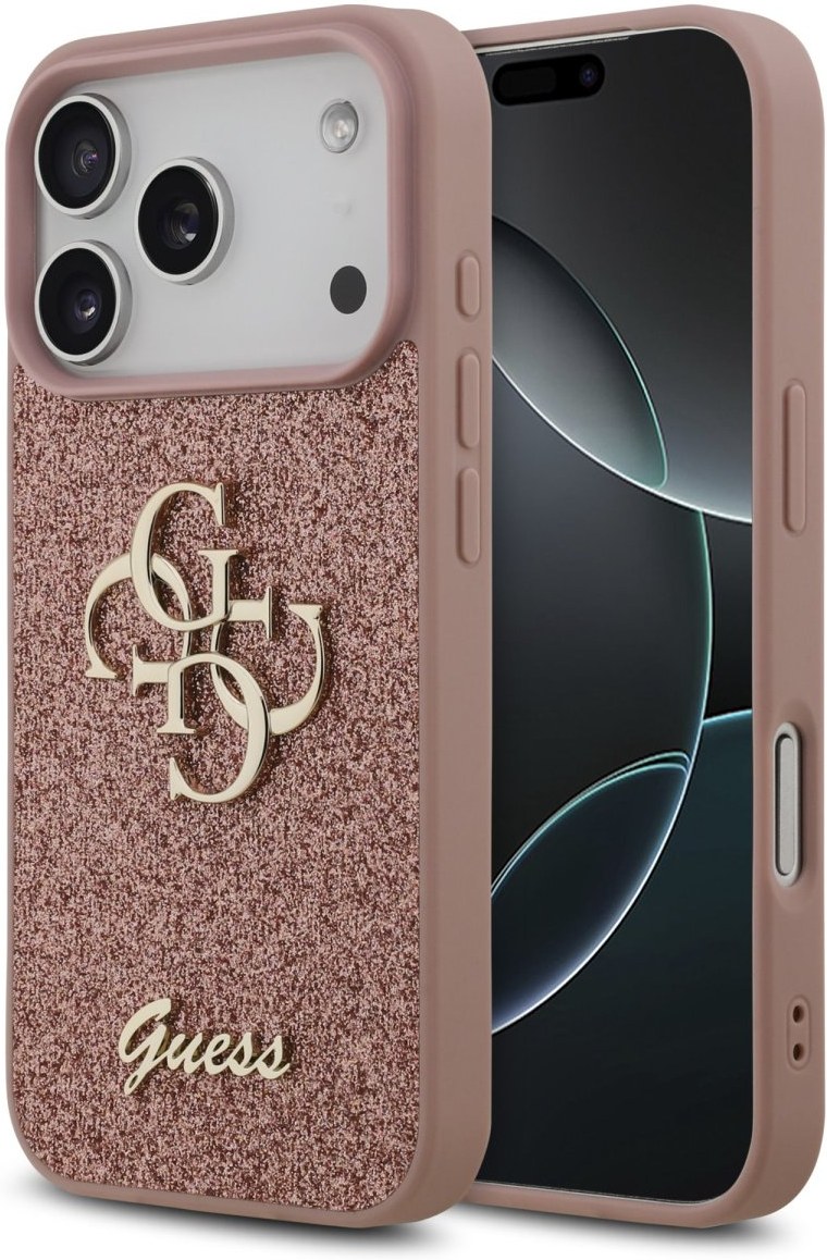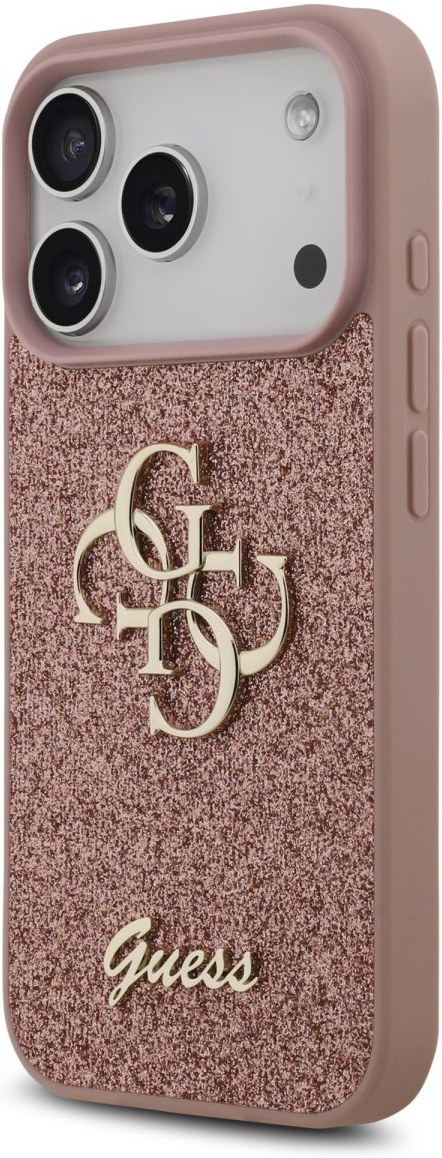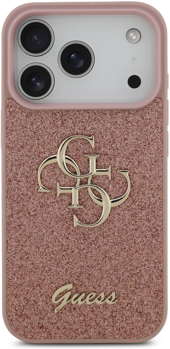 Guess PU Fixed Glitter 4G Metal Logo kryt pre iPhone 17 Pro, ružový