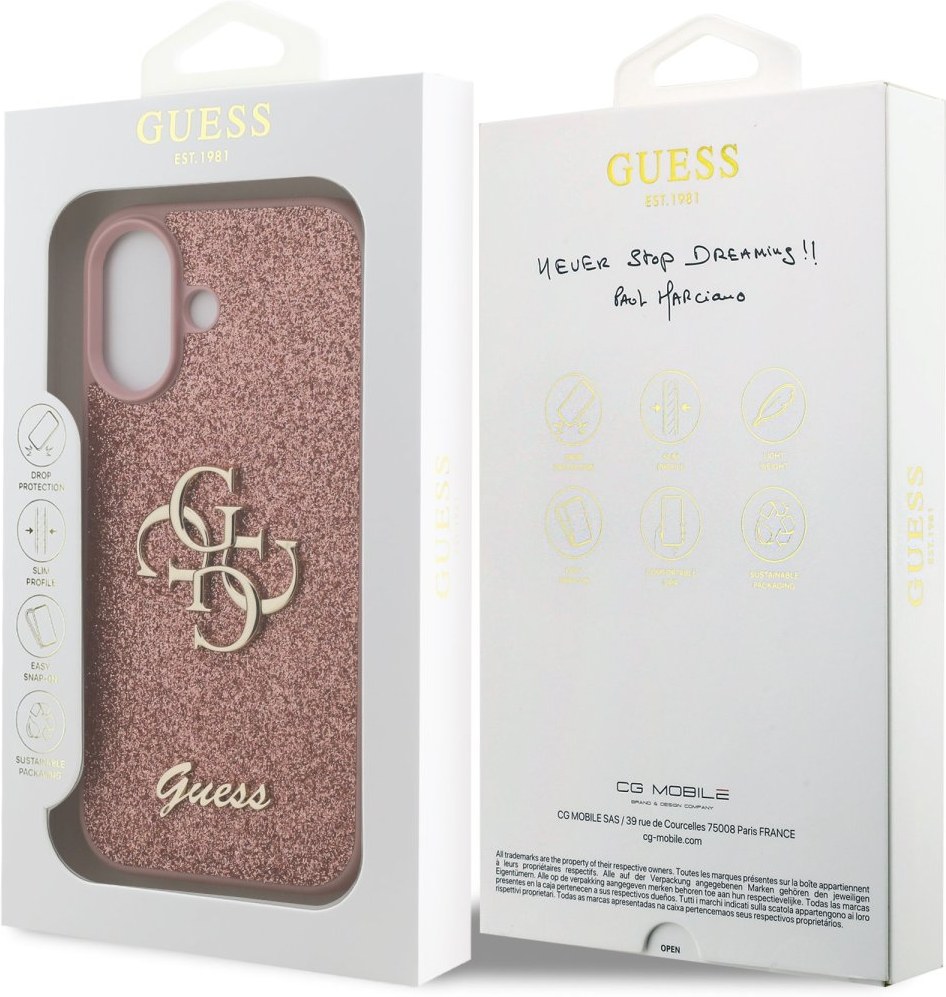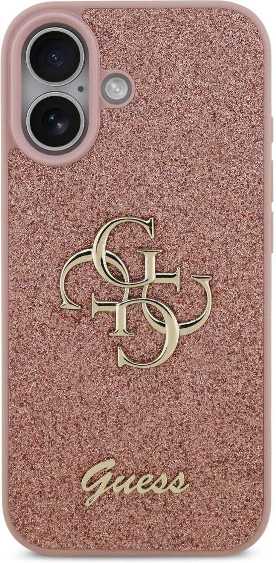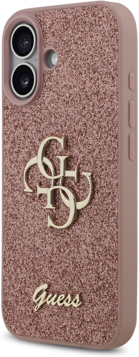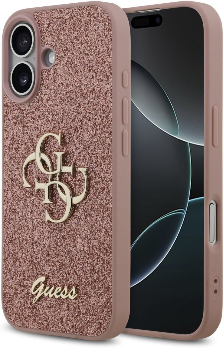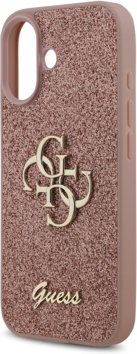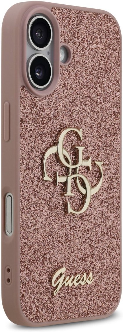 Guess PU Fixed Glitter 4G Metal Logo kryt pre iPhone 17, ružový