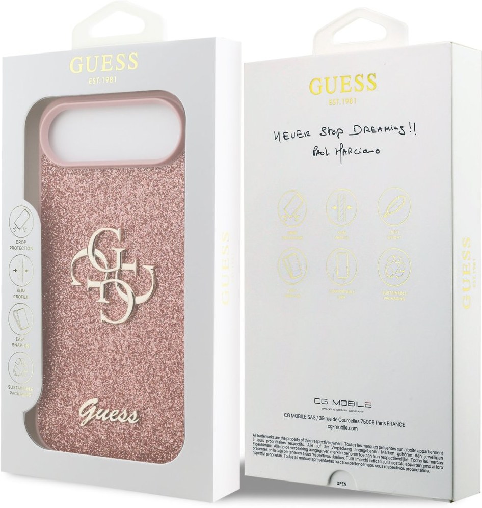 Guess PU Fixed Glitter 4G Metal Logo kryt pre iPhone Air, ružový