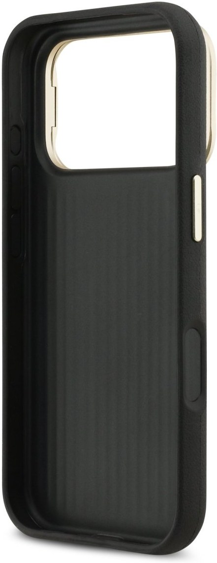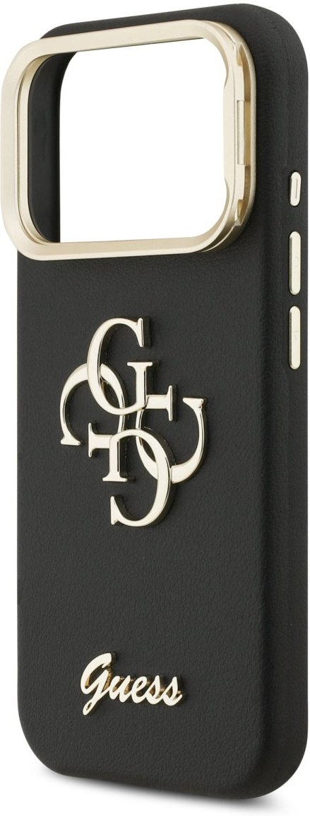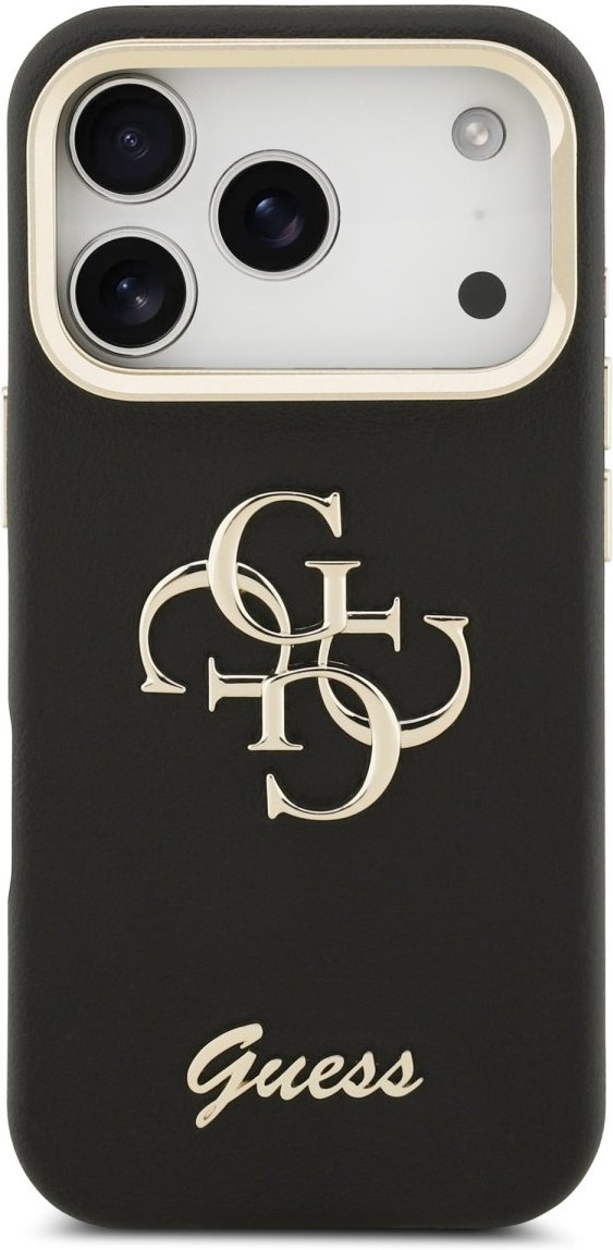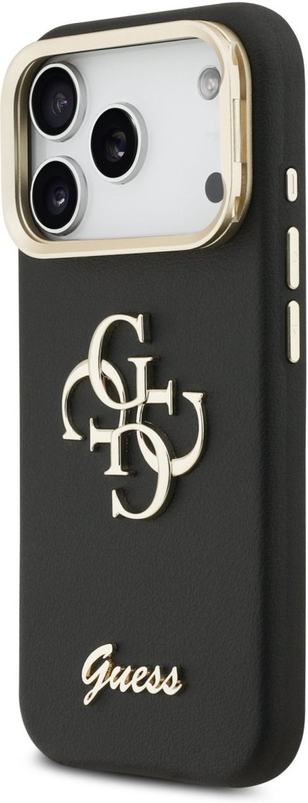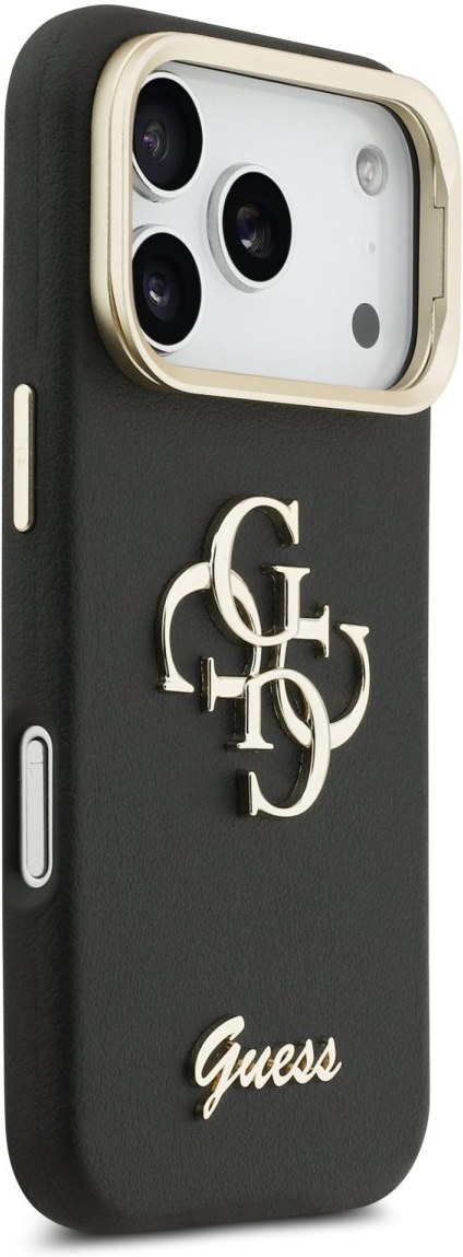Guess PU Grained 4G Logo Stand Camera Frame kryt pre iPhone 17 Pro, čierny