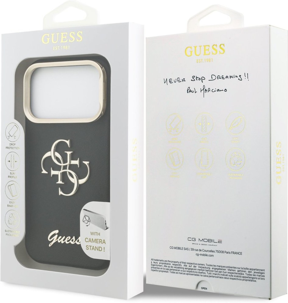 Guess PU Grained 4G Logo Stand Camera Frame zadný kryt je dokonalý doplnok pre váš telefón aj váš outfit, ktorý kombinuje funkčnosť a štýl v jednom. Je vyrobený z ľahkej a odolného PU s textúrou zrnitej kože a ponúka skvelú ochranu a pohodlie pri používaní. Povrchová úprava krytu zaisťuje, že sa skvele drží v ruke a nešmýka sa, čo minimalizuje riziko vykĺznutia telefónu. Vďaka presnému tvaru perfektne sedí na telefóne a umožňuje ľahký prístup ku všetkým tlačidlám a konektorom. Čistý dizajn s dominantným 4G kovovým logom Guess zaujme každého a ľahko sa skombinuje s akýmkoľvek outfitom. Kryt je navyše vybavený praktickým stojanom umiestneným v rámčeku zadného fotoaparátu. Ten umožňuje stabilné postavenie vášho zariadenia, vďaka ktorému si môžete pohodlne vychutnať sledovanie seriálov, vidí, či videohovorov. Pokiaľ teda hľadáte kryt, ktorý kombinuje eleganciu a praktické využitie, je tento kúsok od Guess tou pravou voľbou pre vás.Kľúčové vlastnosti