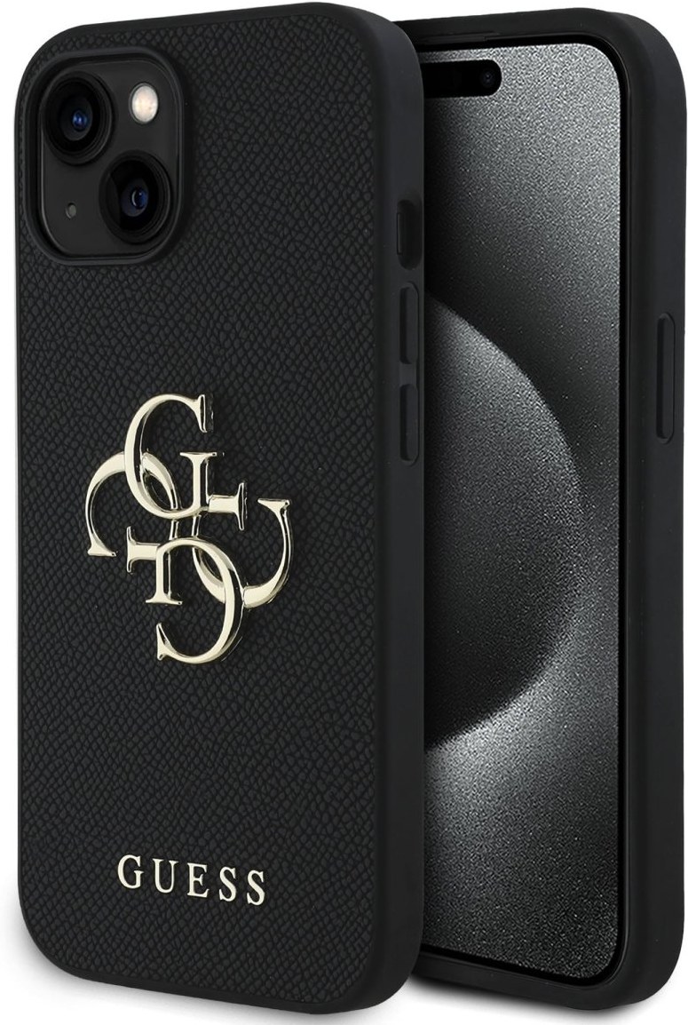 Guess PU Grained 4G Metal Logo kryt pre iPhone 15, čierny