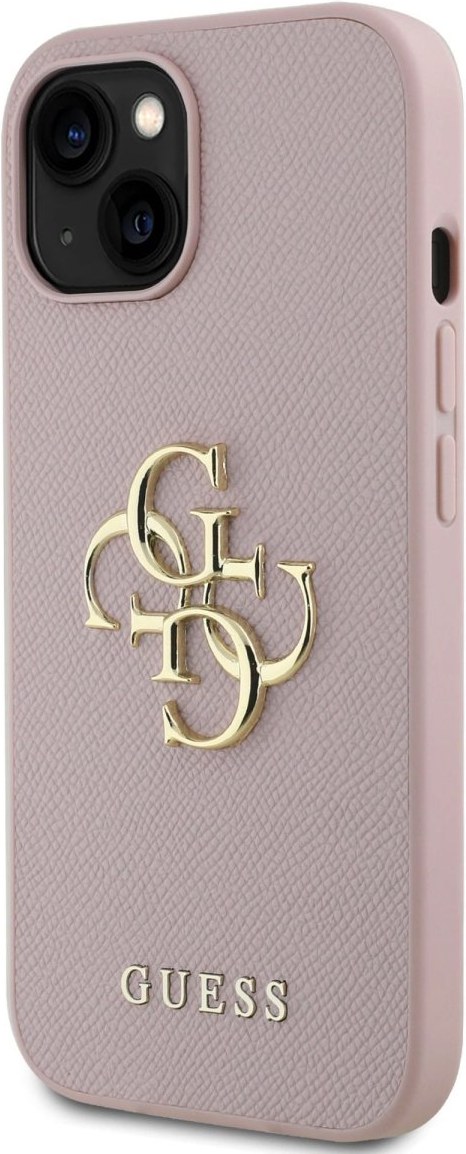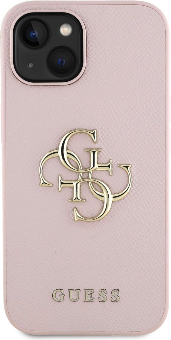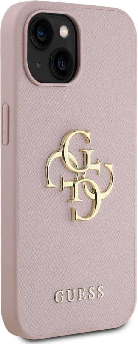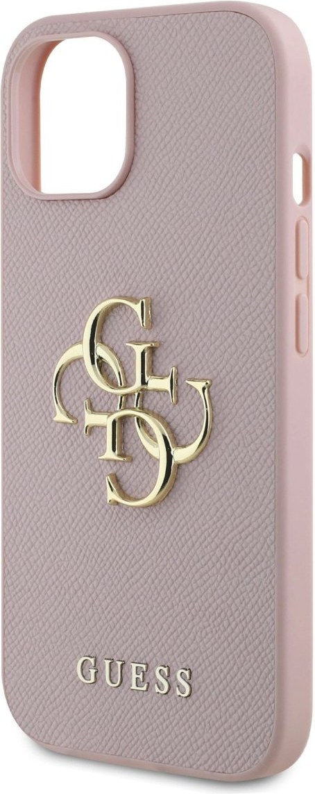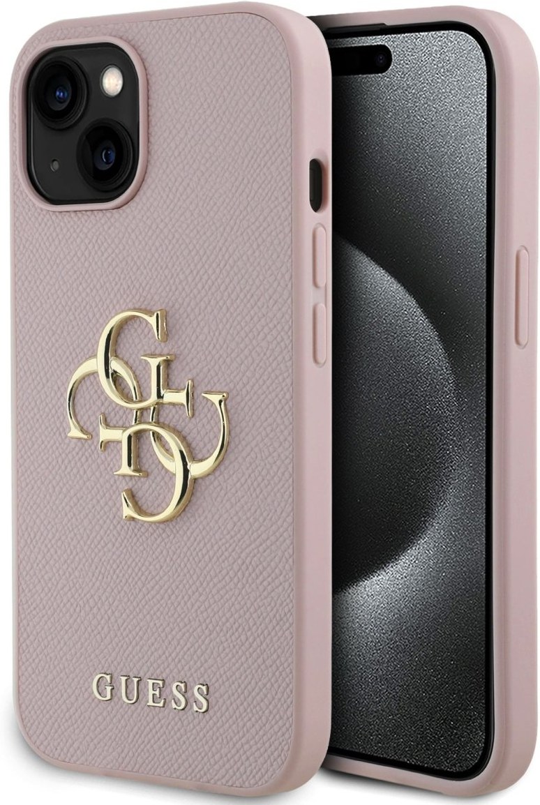 Guess PU Grained 4G Metal Logo kryt pre iPhone 15, ružový
