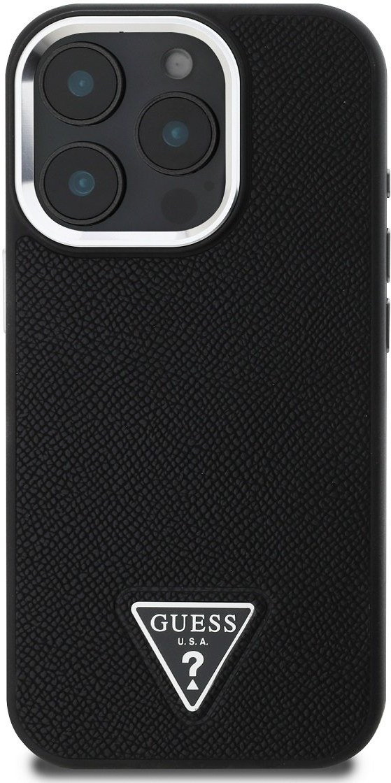 Guess PU Grained Triangle Logo kryt pre iPhone 16 Pro Max, čierny