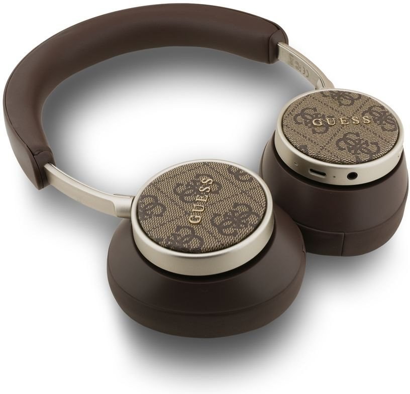 Guess PU Leather 4G Classic Logo ENC, bezdrôtové slúchadlá, hnedé