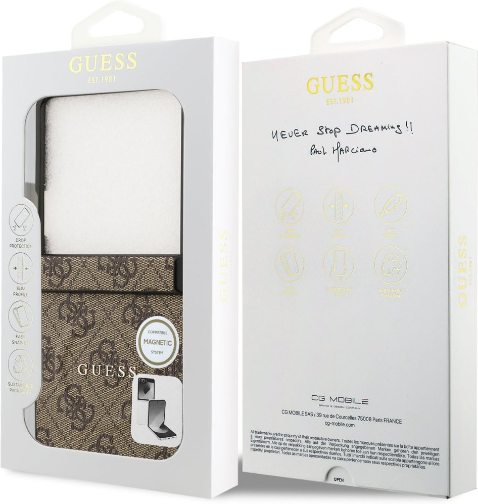 Guess PU Leather 4G Colored Ring Magnetic kryt pre Samsung Galaxy Z Flip 7, hnedý