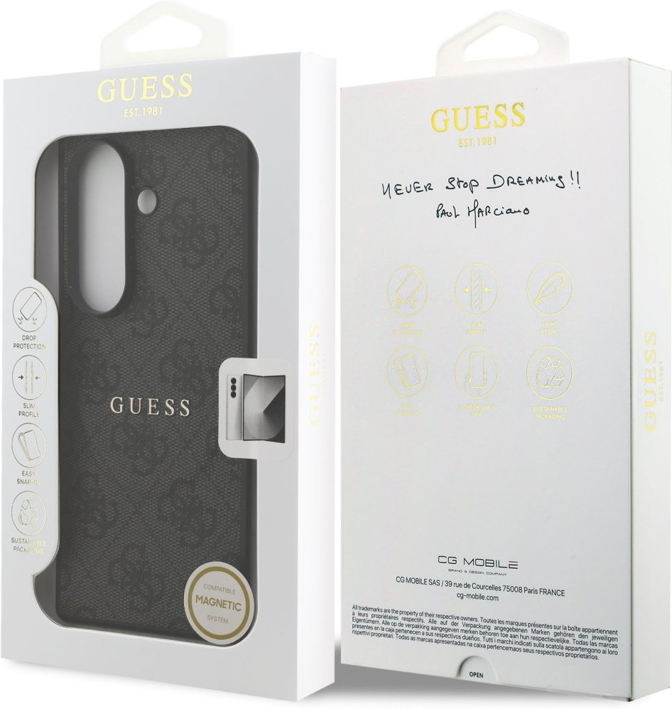 Guess PU Leather 4G Colored Ring Magnetic zadný kryt je dokonalý doplnok pre váš telefón aj váš outfit, ktorý kombinuje funkčnosť a štýl v jednom. Je vyrobený z ľahkej a odolnej PU umelej kože a ponúka skvelú ochranu telefónu aj pohodlia pri používaní. Povrchová úprava krytu zaisťuje, že sa skvele drží v ruke a nešmýka sa, čo minimalizuje riziko vykĺznutia telefónu. Vďaka presnému tvaru perfektne sedí na telefóne a umožňuje ľahký prístup ku všetkým tlačidlám a konektorom. Tento model je vybavený magnetickou funkciou, ktorá umožňuje ľahké a bezpečné uchytenie k magnetickým držiakom – napríklad v aute. Magnet vo vnútri krytu drží pevne bez toho, aby narušoval signál alebo funkčnosť zariadenia, a pritom zachováva štíhly profil celého puzdra. Ide tak o praktické riešenie pre každého. Guess "4G" elegantná potlač a kovové logo dodávajú krytu luxusný a zároveň decentný vzhľad. Pokiaľ teda hľadáte kryt, ktorý kombinuje eleganciu, funkčnosť a praktické využitie aj na cestách, je tento kúsok od Guess tou pravou voľbou pre vás.Kľúčové vlastnosti
