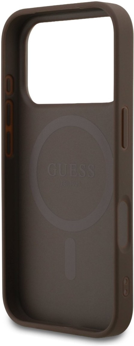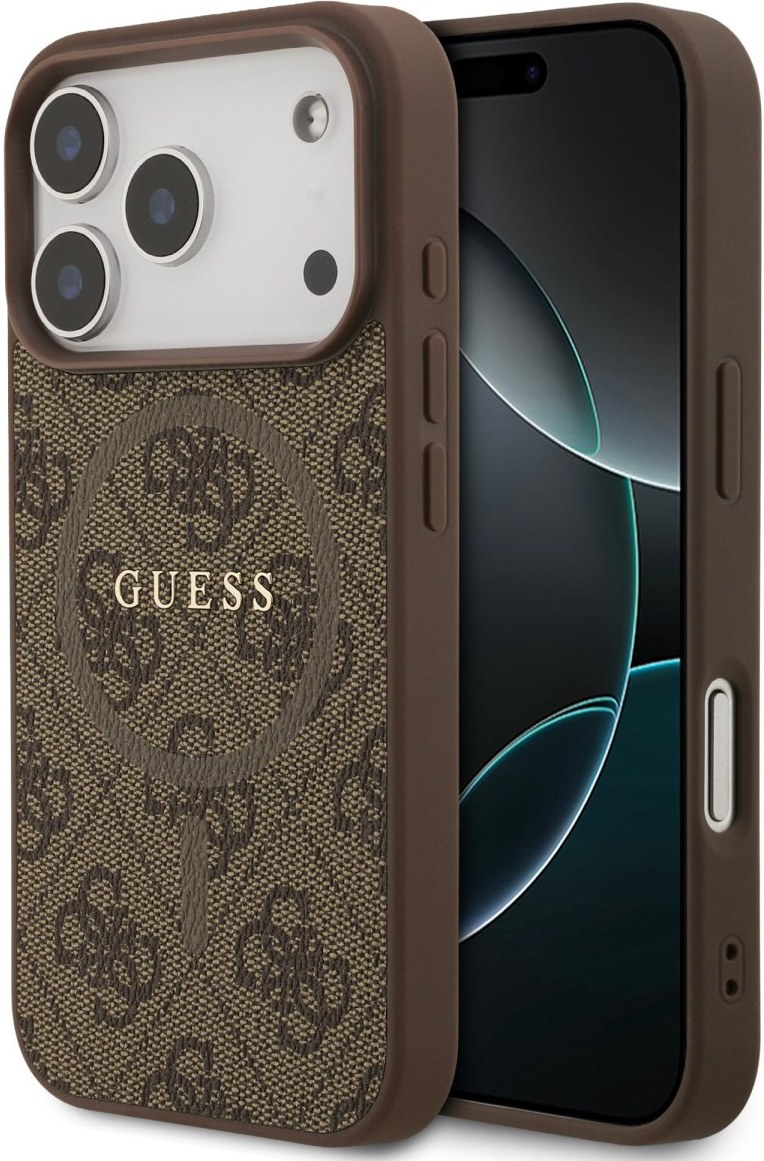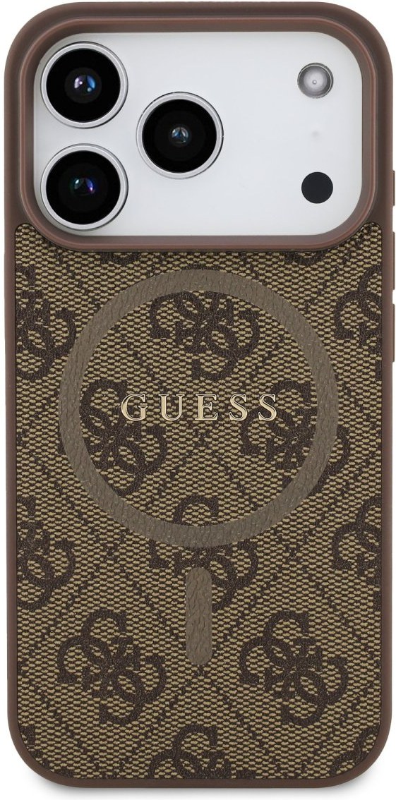 Guess PU Leather 4G Colored Ring MagSafe kryt pre iPhone 17 Pro, hnedý