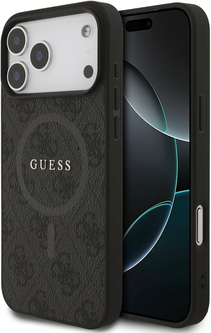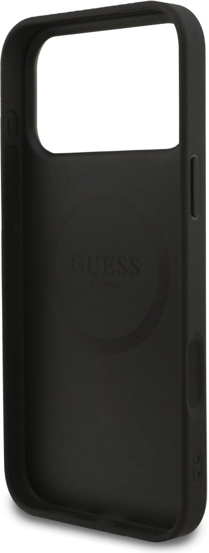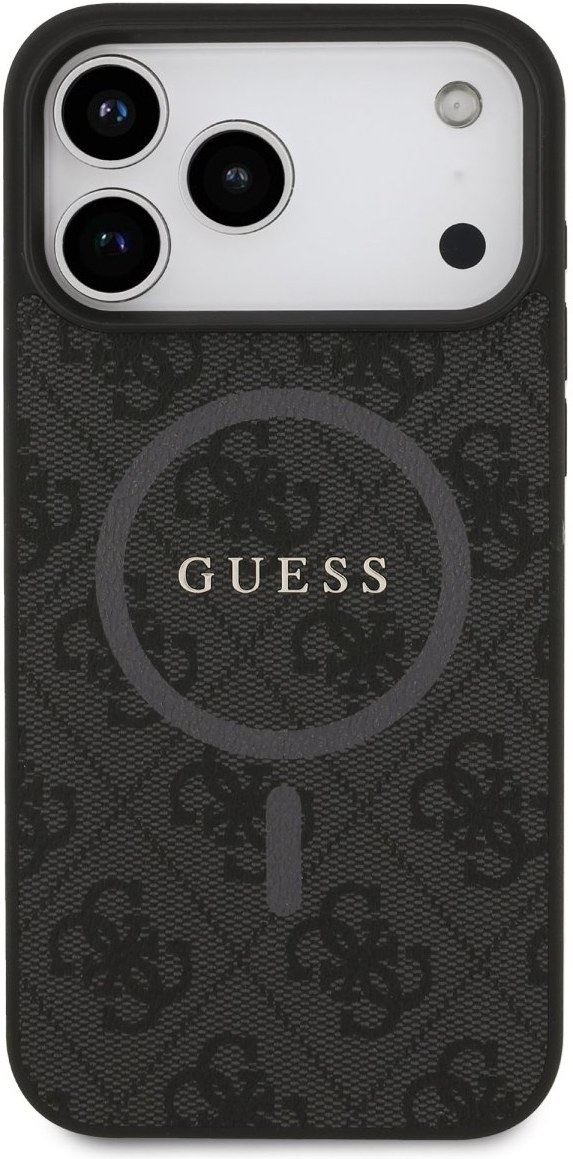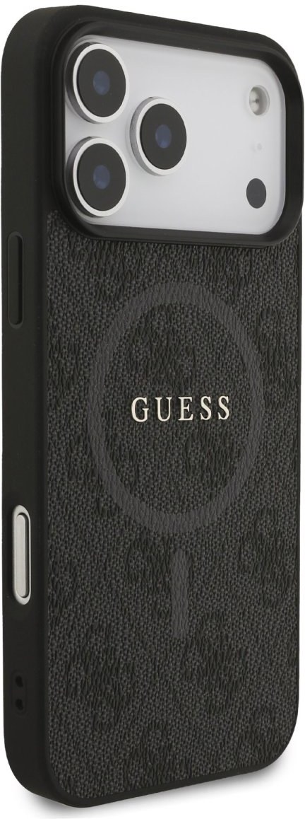 Guess PU Leather 4G Colored Ring MagSafe kryt pre iPhone 17 Pro Max, čierny