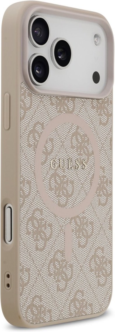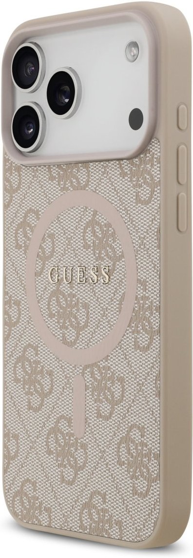Guess PU Leather 4G Colored Ring MagSafe kryt pre iPhone 17 Pro Max, ružový