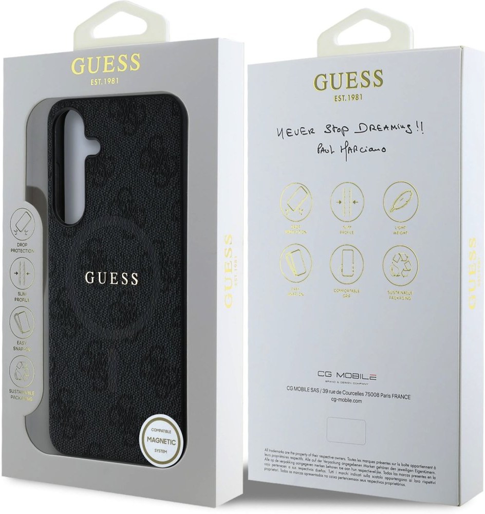 Guess PU Leather 4G Colored Ring MagSafe zadný kryt je dokonalý doplnok pre váš telefón aj váš outfit, ktorý kombinuje funkčnosť a štýl v jednom. Je vyrobený z ľahkej a odolnej PU umelej kože a ponúka skvelú ochranu telefónu aj pohodlia pri používaní. Povrchová úprava krytu zaisťuje, že sa skvele drží v ruke a nešmýka sa, čo minimalizuje riziko vykĺznutia telefónu. Vďaka presnému tvaru perfektne sedí na telefóne a umožňuje ľahký prístup ku všetkým tlačidlám a konektorom. Tento kryt podporuje technológiu MagSafe, čo znamená, že je kompatibilný s bezdrôtovým nabíjaním a ďalšími MagSafe doplnkami. Guess „4G“ elegantná potlač a kovové logo ponúka nielen decentný, ale aj luxusný vzhľad. Pokiaľ teda hľadáte kryt, ktorý kombinuje eleganciu a funkčnosť, je tento kúsok od Guess tou pravou voľbou pre vás.Vlastnosti