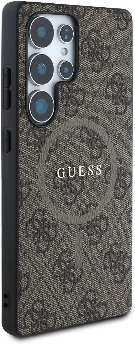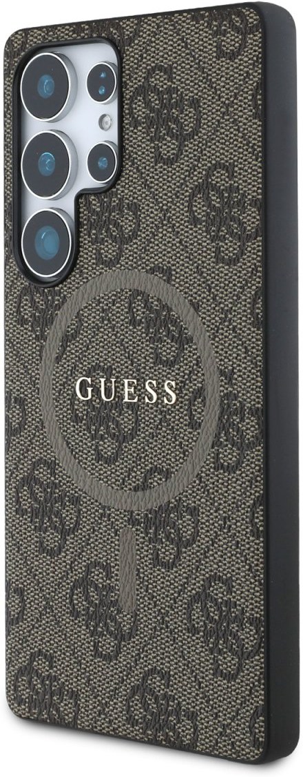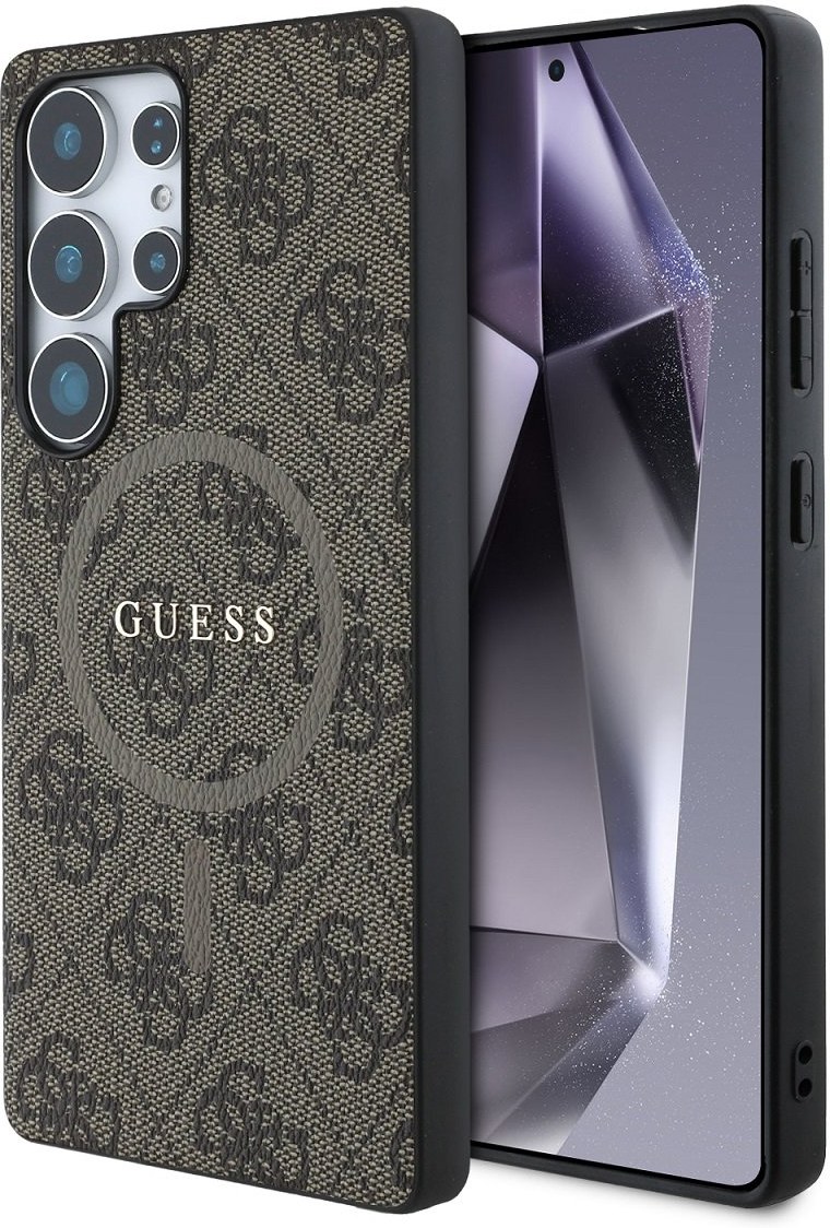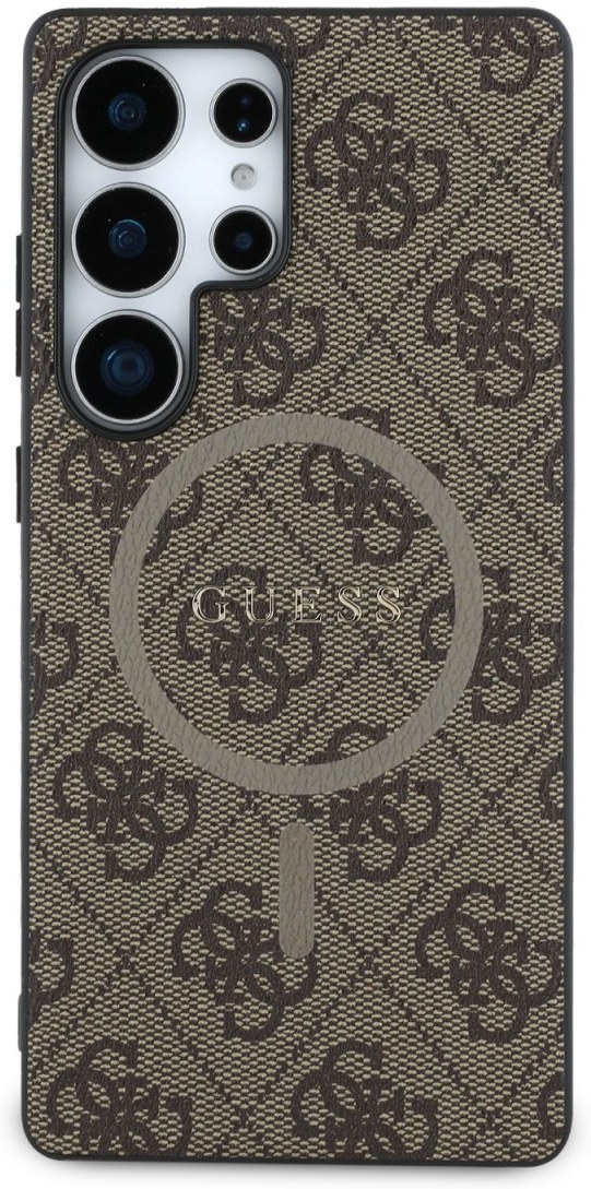 Guess PU Leather 4G Colored Ring MagSafe kryt pre Samsung Galaxy S25 Ultra, hnedý