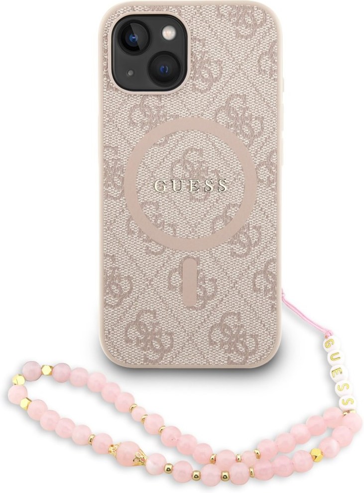 Guess PU Leather 4G Colored Ring Strap MagSafe zadný kryt je dokonalý doplnok pre váš telefón aj váš outfit, ktorý kombinuje funkčnosť a štýl v jednom. Je vyrobený z ľahkej a odolnej PU umelej kože a ponúka skvelú ochranu telefónu aj pohodlia pri používaní. Povrchová úprava krytu zaisťuje, že sa skvele drží v ruke a nešmýka sa, čo minimalizuje riziko vykĺznutia telefónu. Vďaka presnému tvaru perfektne sedí na telefóne a umožňuje ľahký prístup ku všetkým tlačidlám a konektorom. Tento kryt podporuje technológiu MagSafe, čo znamená, že je kompatibilný s bezdrôtovým nabíjaním a ďalšími MagSafe doplnkami. Guess "4G" elegantná potlač a kovové logo ponúka nielen decentný, ale aj luxusný vzhľad. Kryt je doplnený elegantným koralovým pútkom, ktorý môžete nasadiť na zápästie, aby vám telefón nevykĺzol z ruky. To vám zaručí bezpečné manipulovanie s vaším zariadením. Pokiaľ teda hľadáte kryt, ktorý kombinuje eleganciu a funkčnosť, je tento kúsok od Guess tou pravou voľbou pre vás.Kľúčové vlastnosti