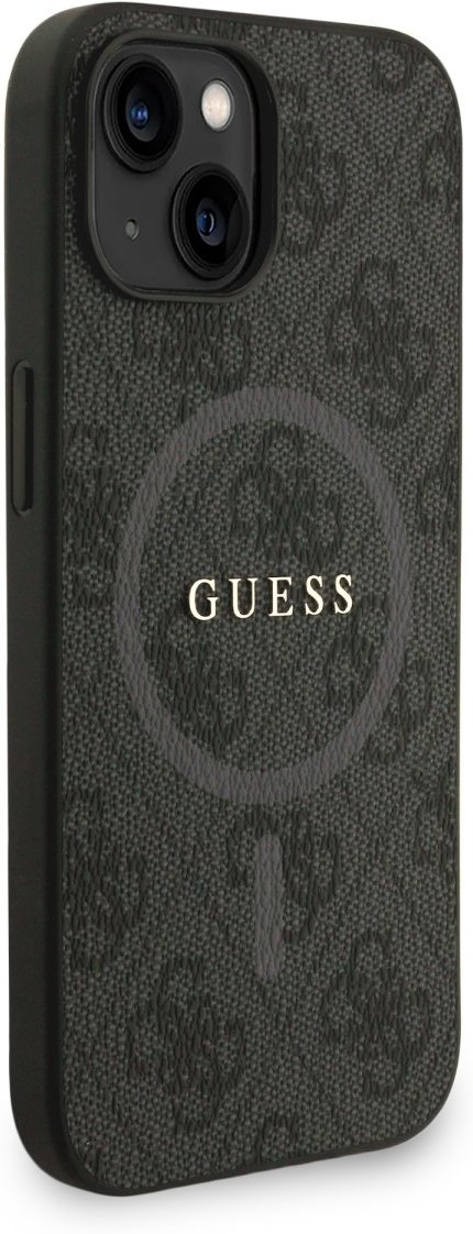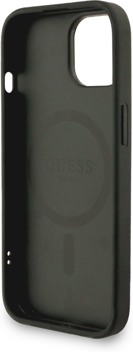 Guess PU Leather 4G Colored Ring Strap MagSafe kryt pre iPhone 15, čierny