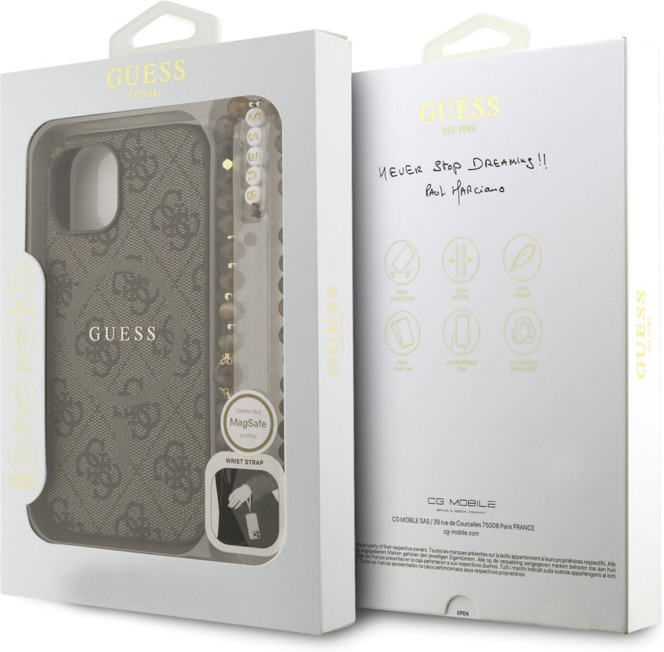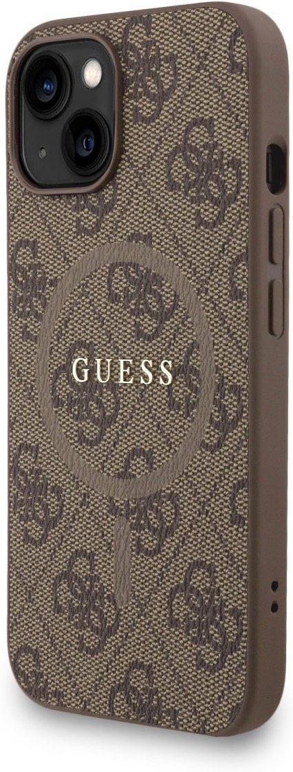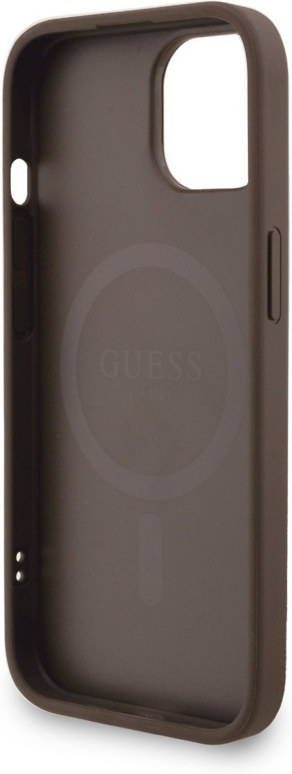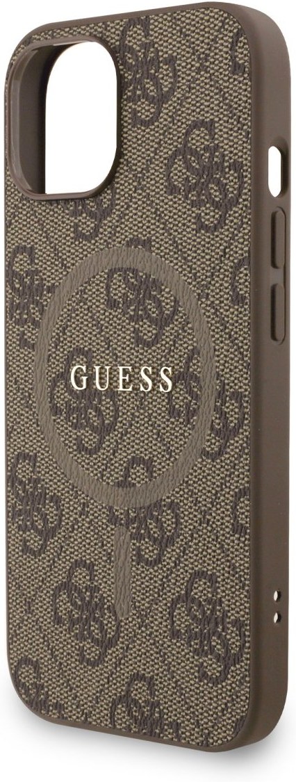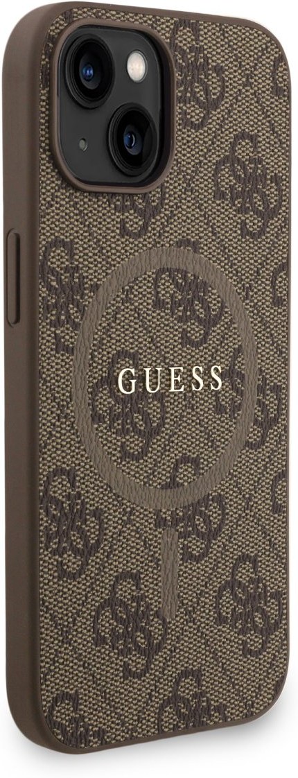 Guess PU Leather 4G Colored Ring Strap MagSafe kryt pre iPhone 15, hnedý